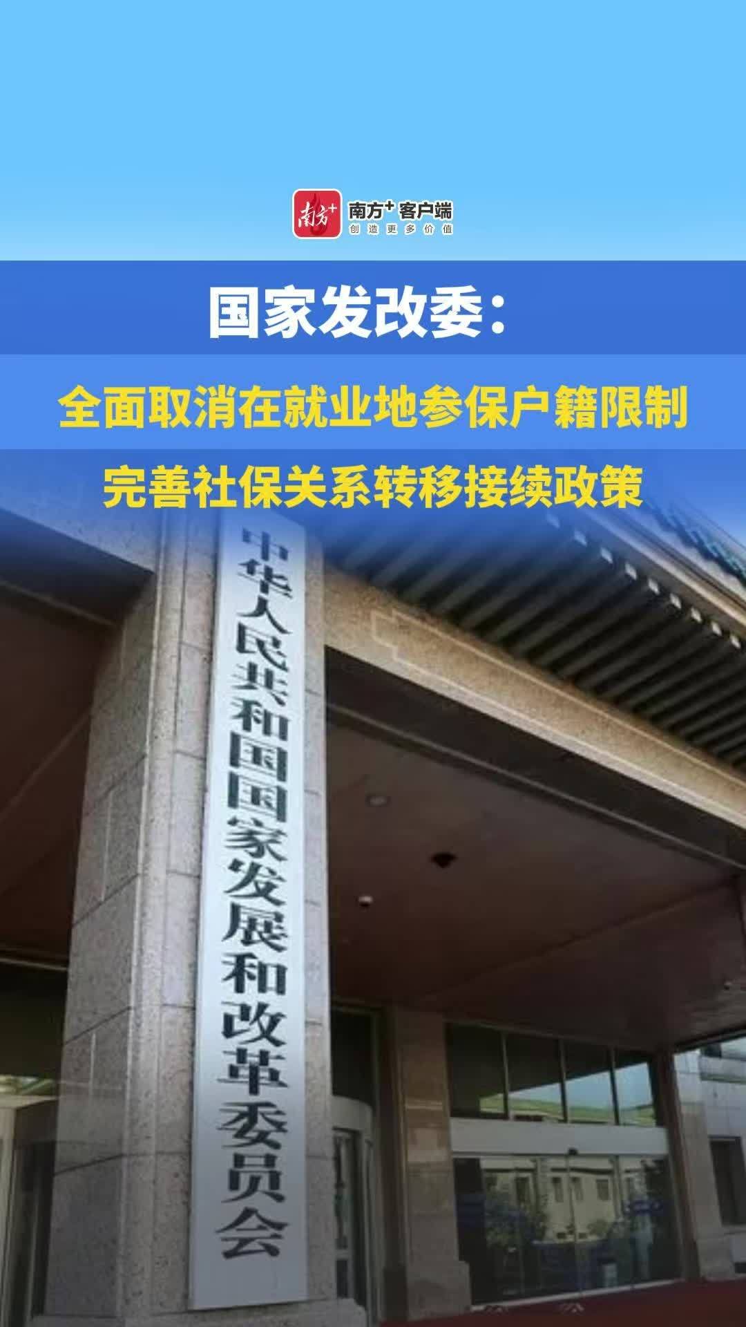 国家发改委:全面取消在就业地参保户籍限制,完善社保关系转移接续政策