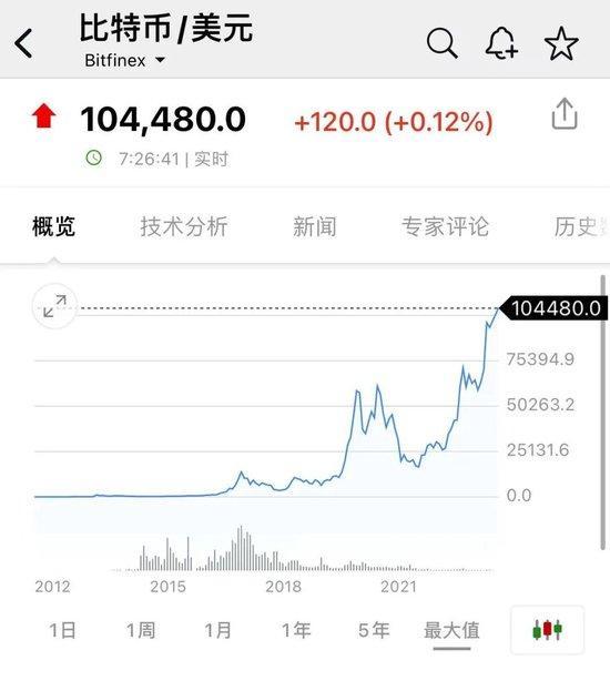 加密货币市场的剧烈波动也影响了其他货币,比特币自97000美元/枚附近直线拉升至突破105000美元/枚,之后有所回调,截至目前仍报104480美元/枚。