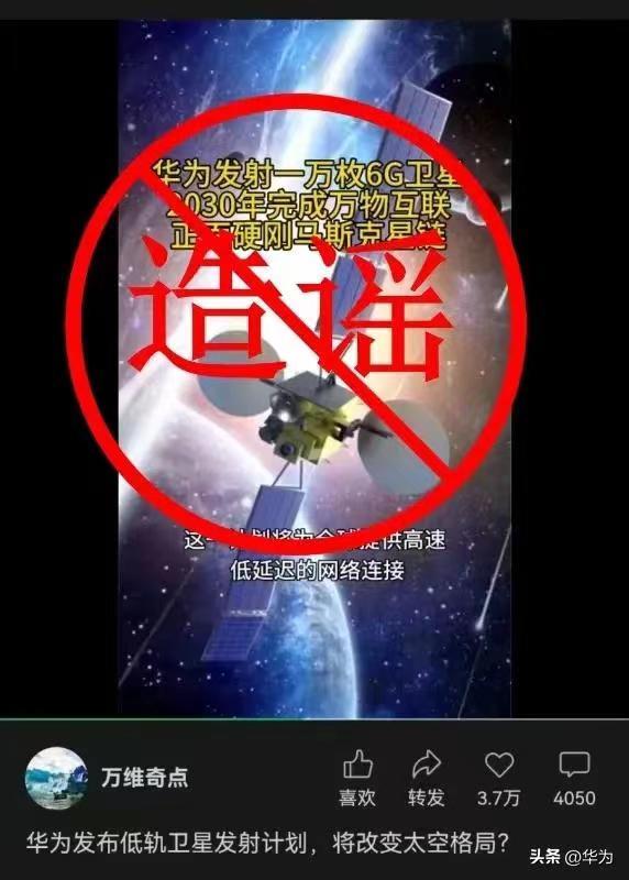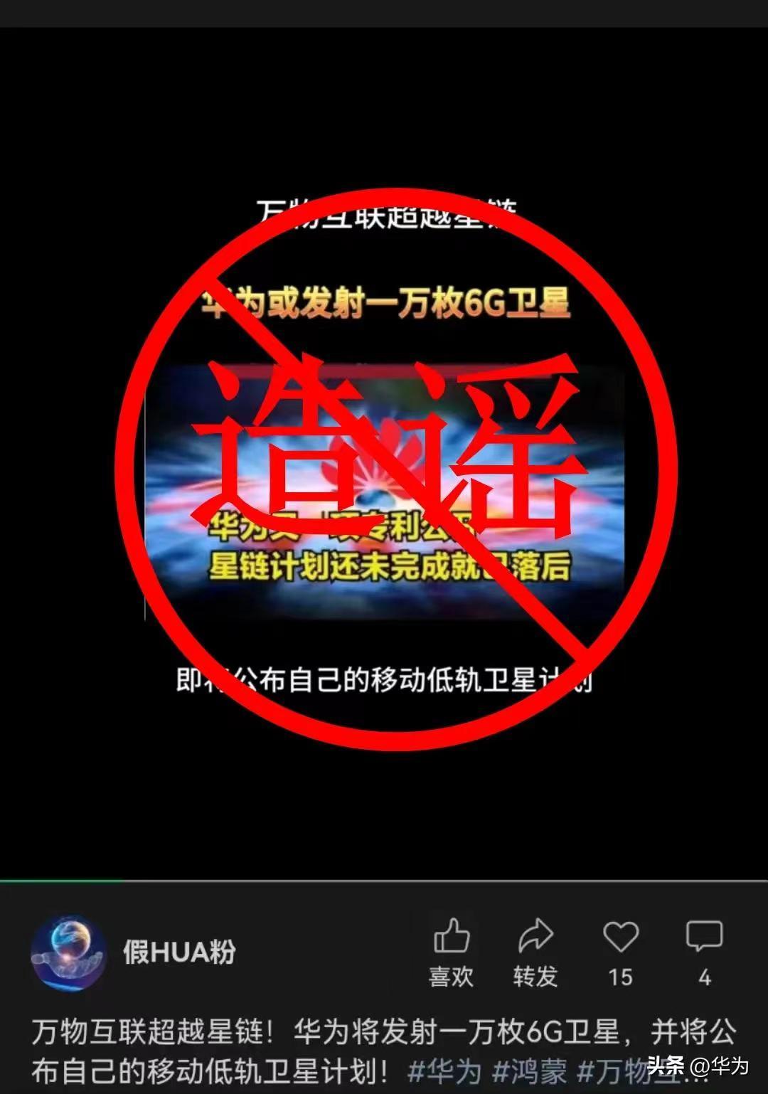 记者了解到,2021年也曾有报道称华为7月将与中国移动公司、中国航天公司合作发射两颗卫星,意在进军6G,并率先抢占6G研发先机。2021年7月,华为技术有限公司官方微博“华为中国”发文辟谣,附上多家媒体、自媒体的报道截图并打上“假消息”字样,配文为“假消息”。