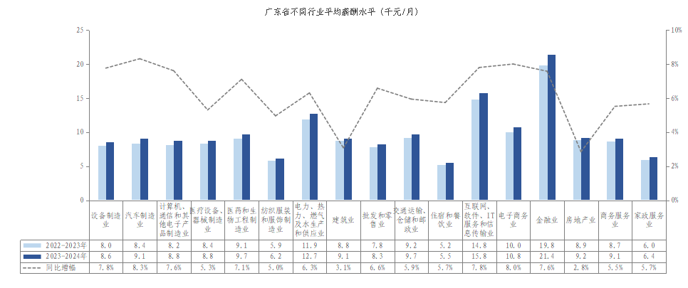 广东省2023-2024年度平均月薪为9100元,同比增长5.8%,与全省2023年地区生产总值预期增长5%以上的态势基本一致;金融业薪酬依旧领先,广东制造业“压舱石”“顶梁柱”作用日渐凸显……