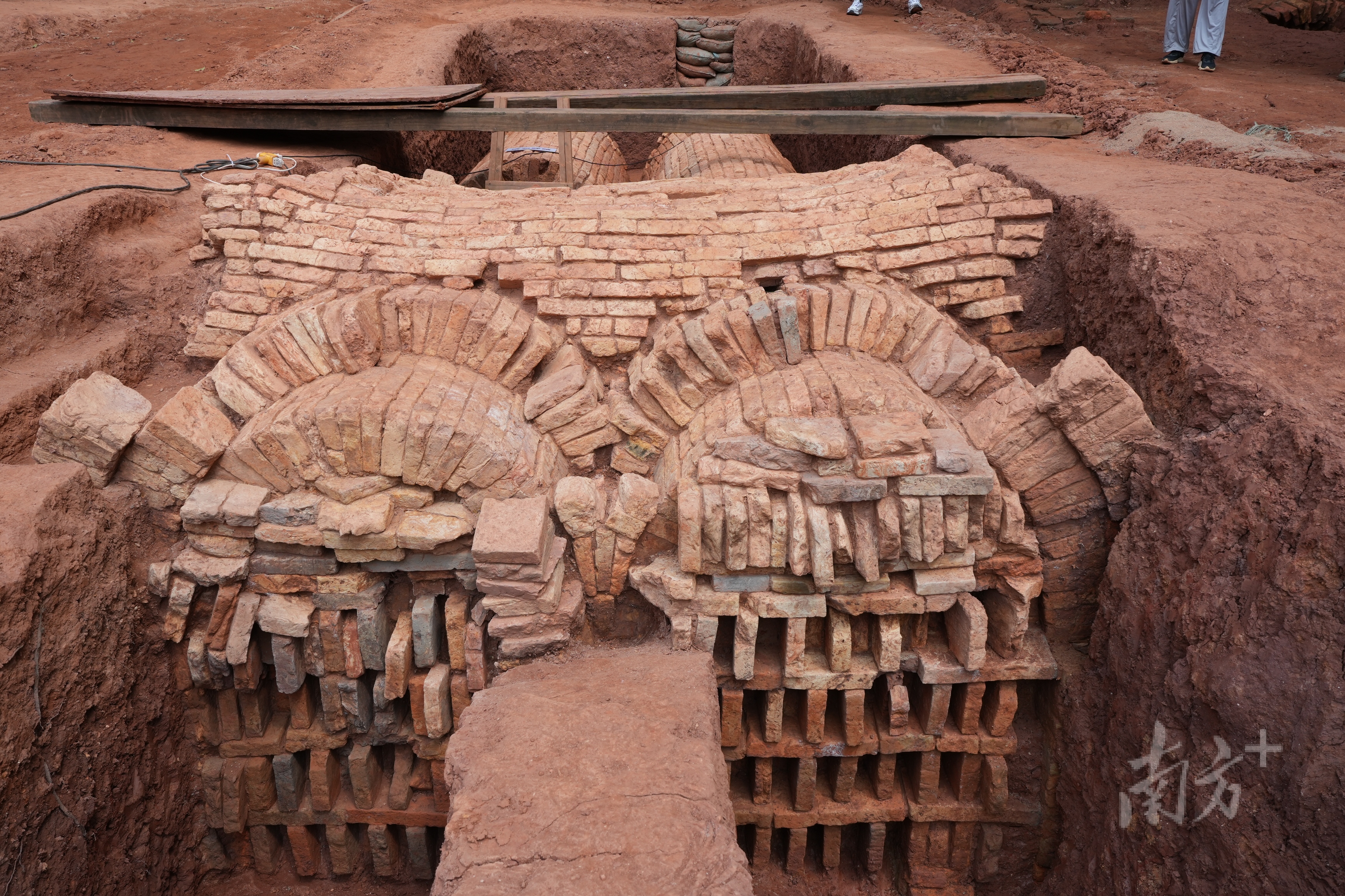 “我挖过很多墓葬,但在揭露这座墓葬的时候,心情依然很激动!”程浩站在东晋墓旁,指着墓室顶部的券拱说道。这座东晋墓规模较大、结构复杂,在长达10米的墓室顶部及四壁上未发现明显损毁,仅在封门上部有一个盗洞,是迄今为止在广州地区发现的规模最大、保存最好的东晋墓葬,也是这次考古工作最重要的发现之一。