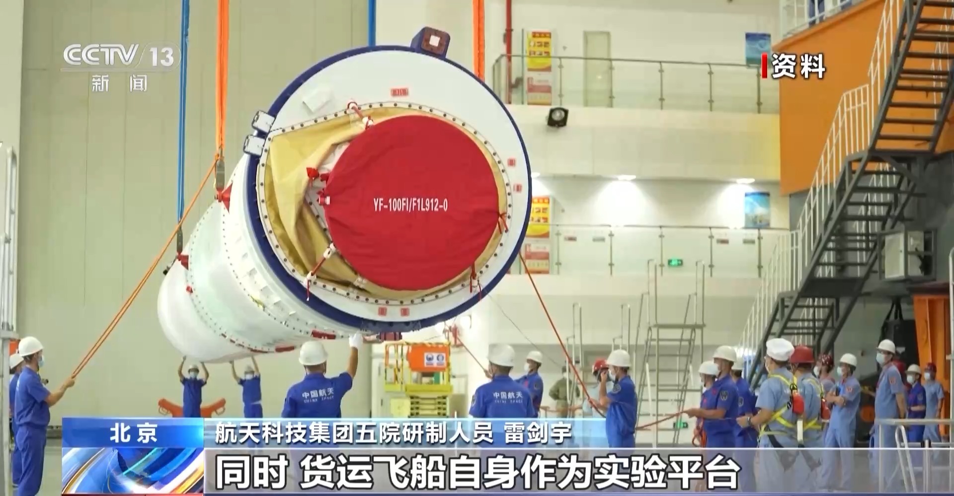航天科技集团五院研制人员 雷剑宇:此次任务除了我们为航天员在轨驻留消耗进行推进剂的补给,我们还对在轨实验设备载荷的运输能力(进行)提升。同时,货运飞船自身作为实验平台,也是搭载多项科学实验。
