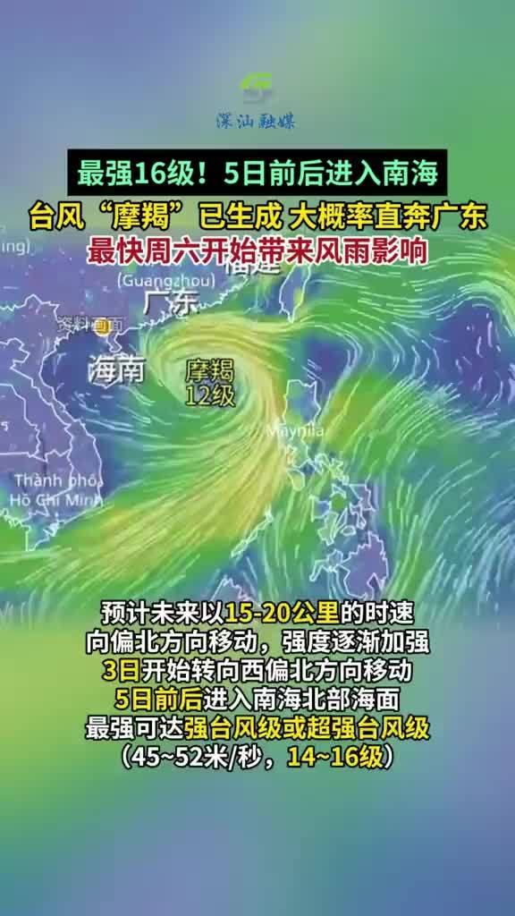 今年第11号台风“摩羯”生成,广东7日起或将有雨