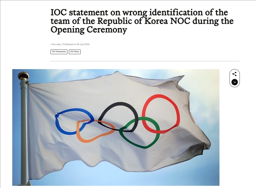 巴黎奥运会开幕式期间,当韩国代表团出场时,转播方将韩国念成了朝鲜。