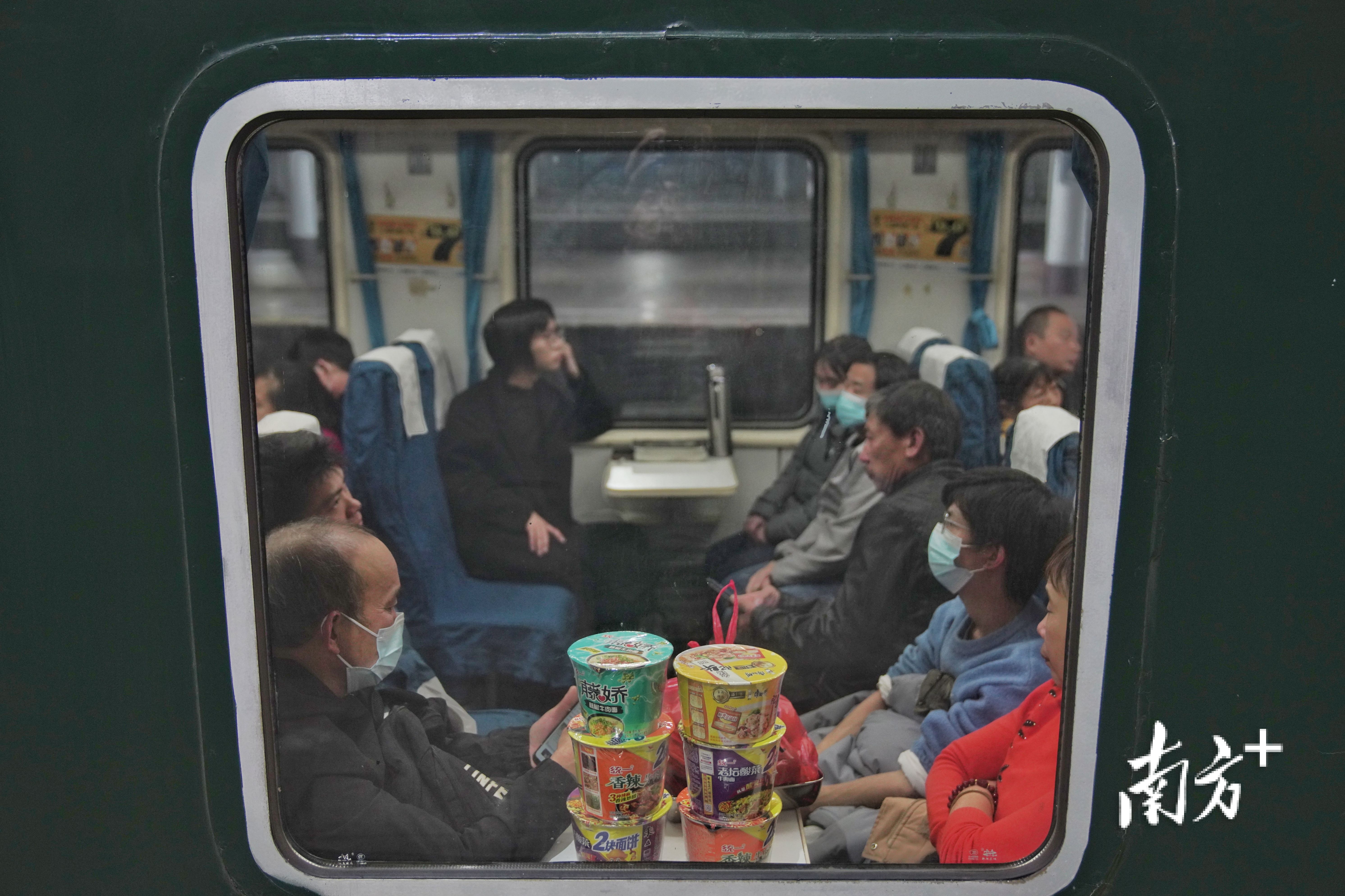 陪伴旅客20多个小时的不止有同行亲友,还有泡面零食。