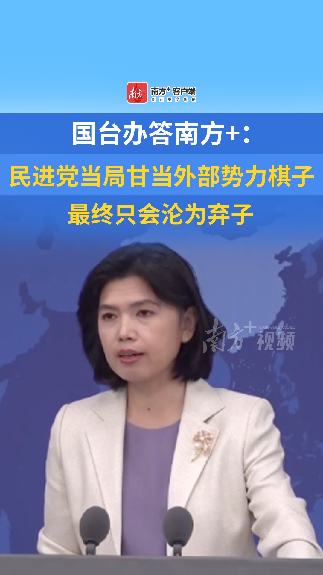 国台办答南方+:民进党当局甘当外部势力棋子,最终只会沦为弃子