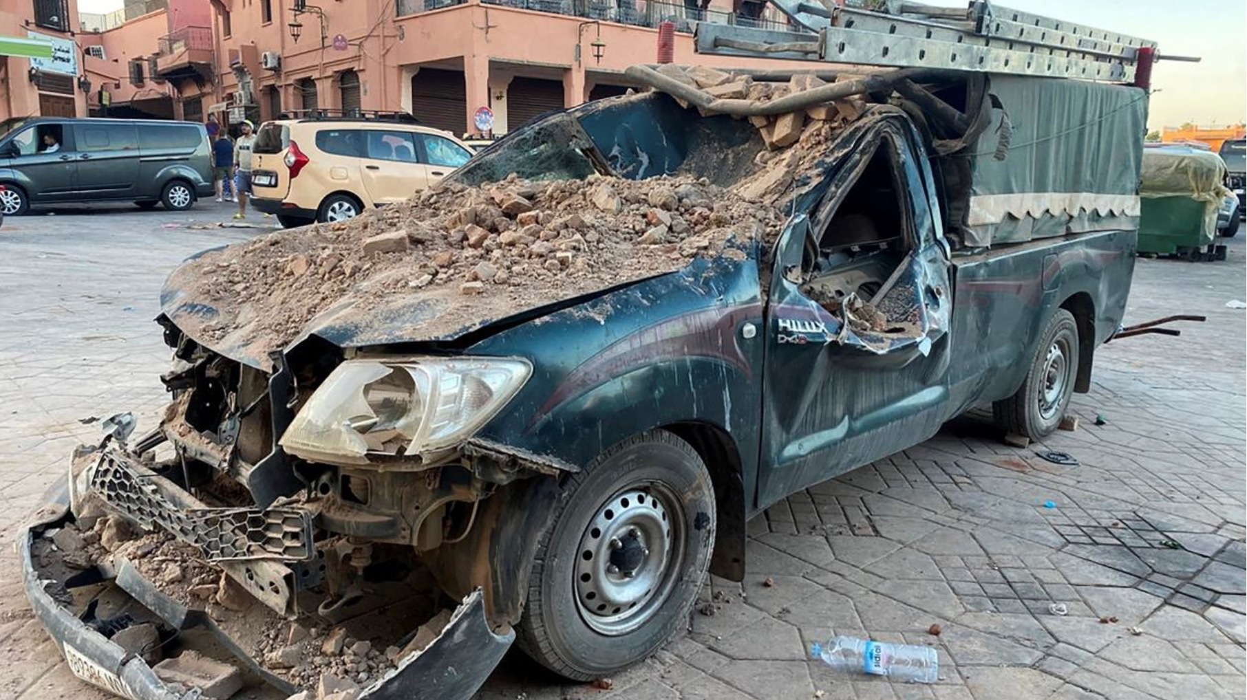 摩洛哥历史名城马拉喀什一辆因地震受损的车辆