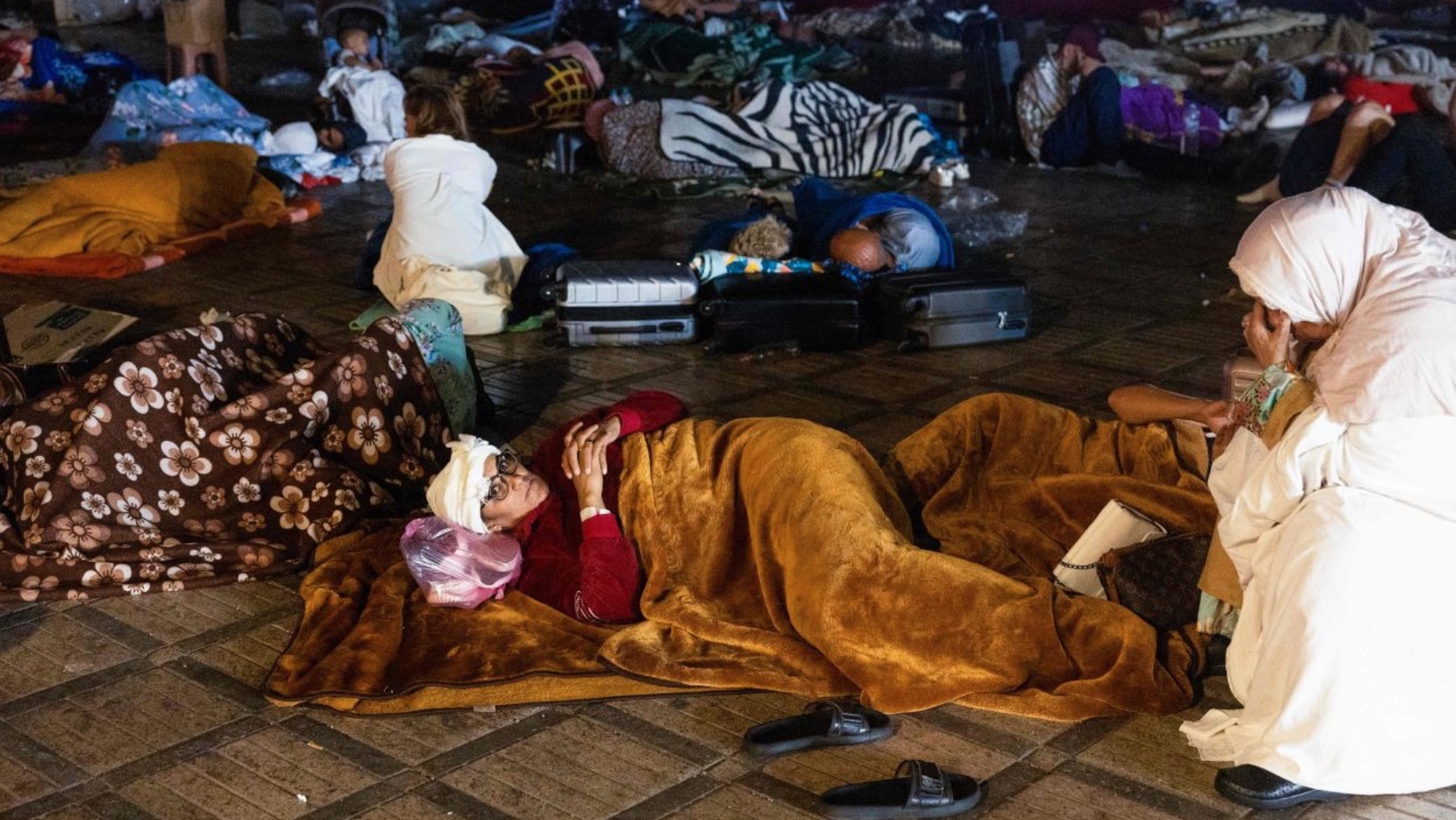 震后,马拉喀什居民呆在广场上