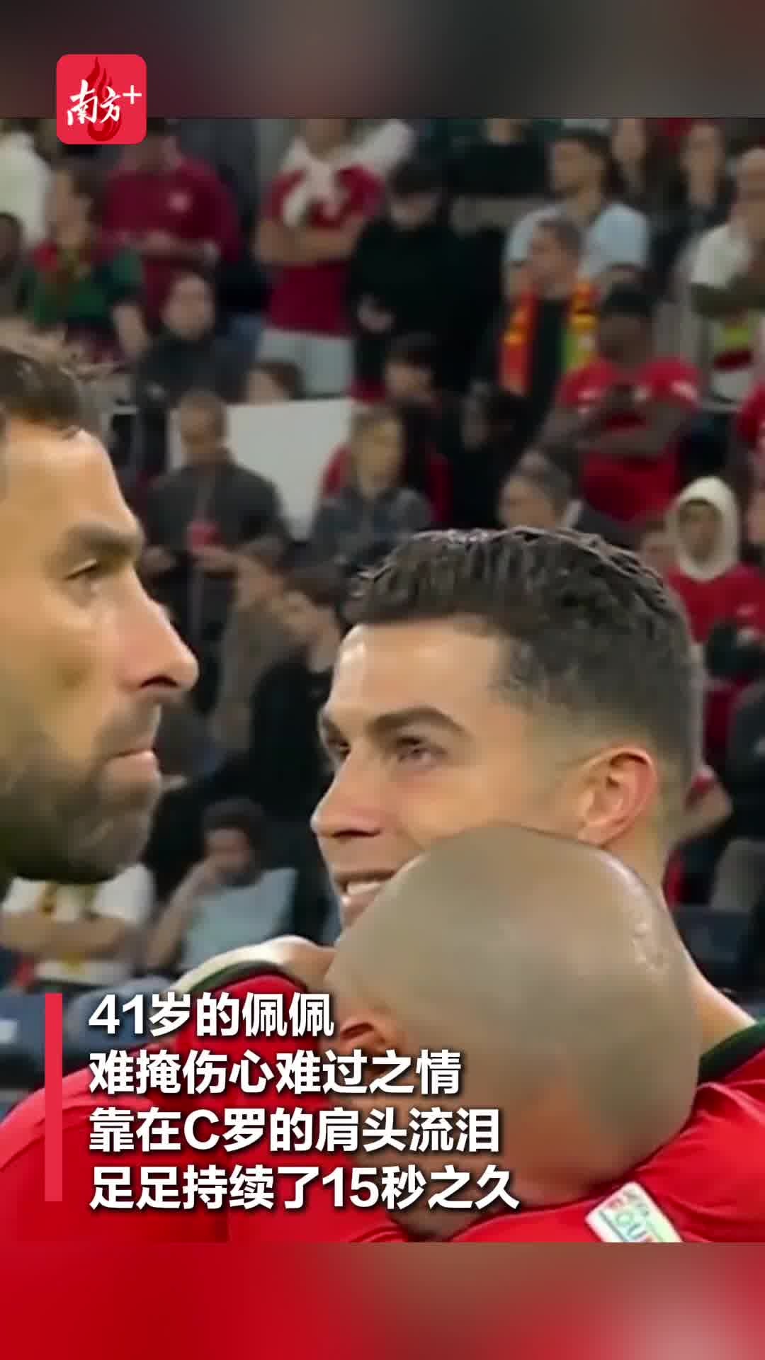 赛后,41岁的佩佩难掩伤心难过之情,靠在C罗的肩头流泪,足足持续了15秒之久。这一幕,通过转播镜头传遍了整个世界。对于他们两人来说,这或许也是最后一次在洲际大赛中并肩作战了。