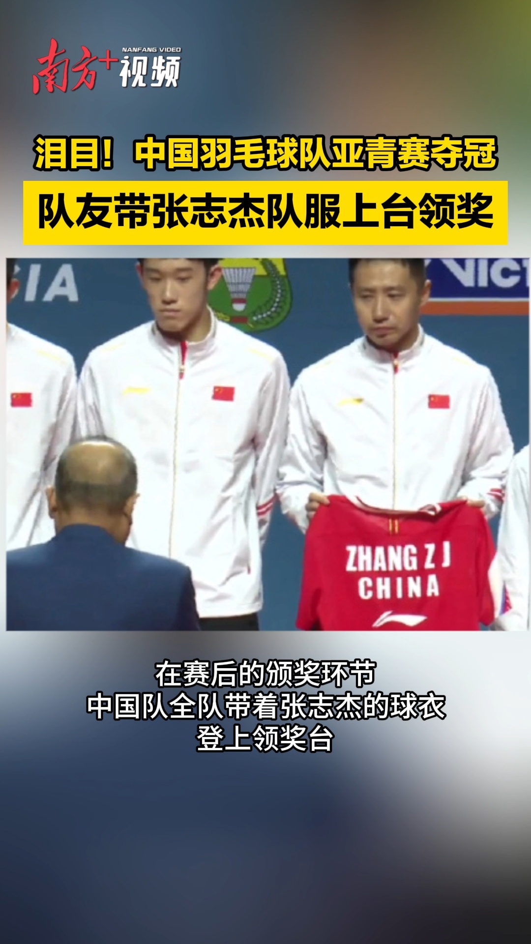 泪目!中国羽毛球队亚青赛夺冠,队友带张志杰队服上台领奖