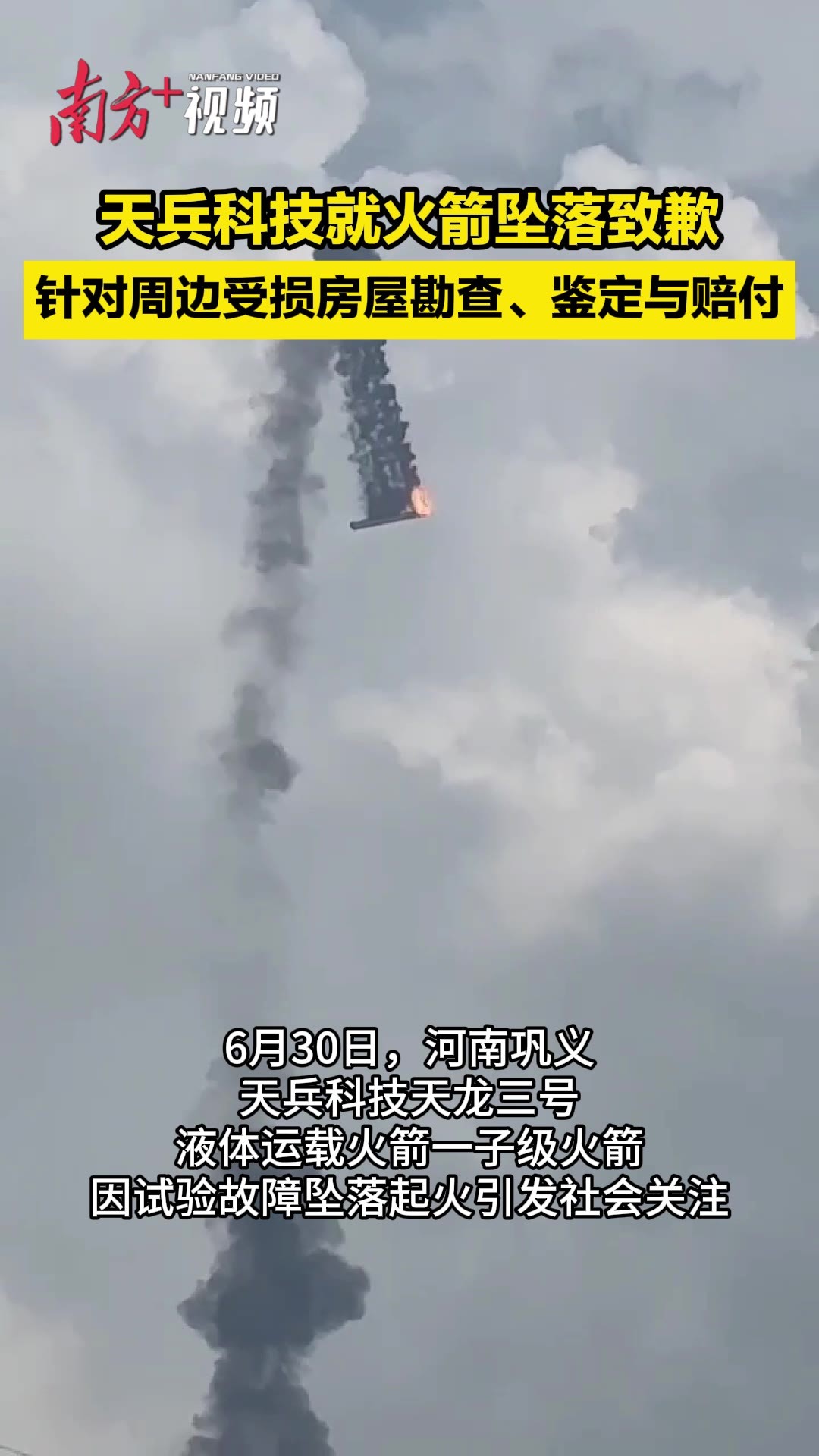 天兵科技就火箭坠落致歉,针对周边受损房屋勘查、鉴定与赔付