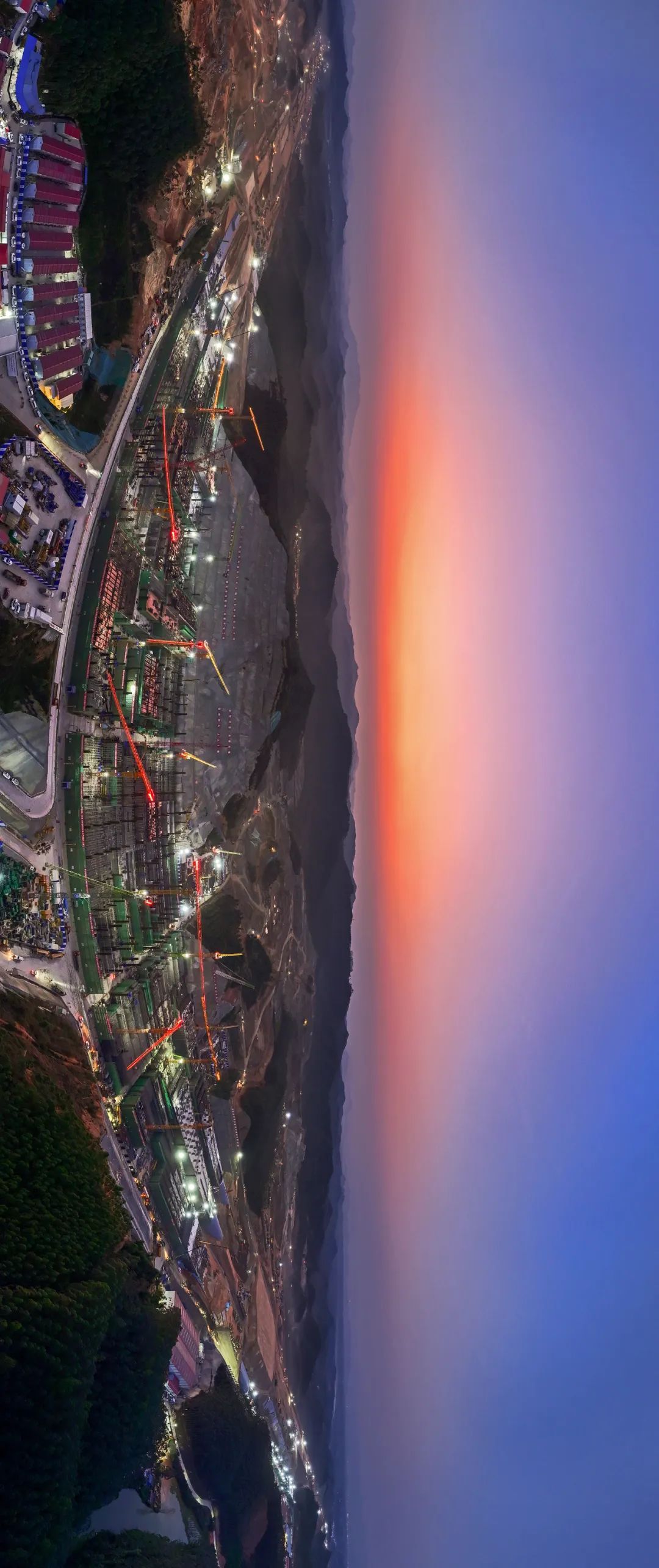 塔吊林立、卡车穿梭、