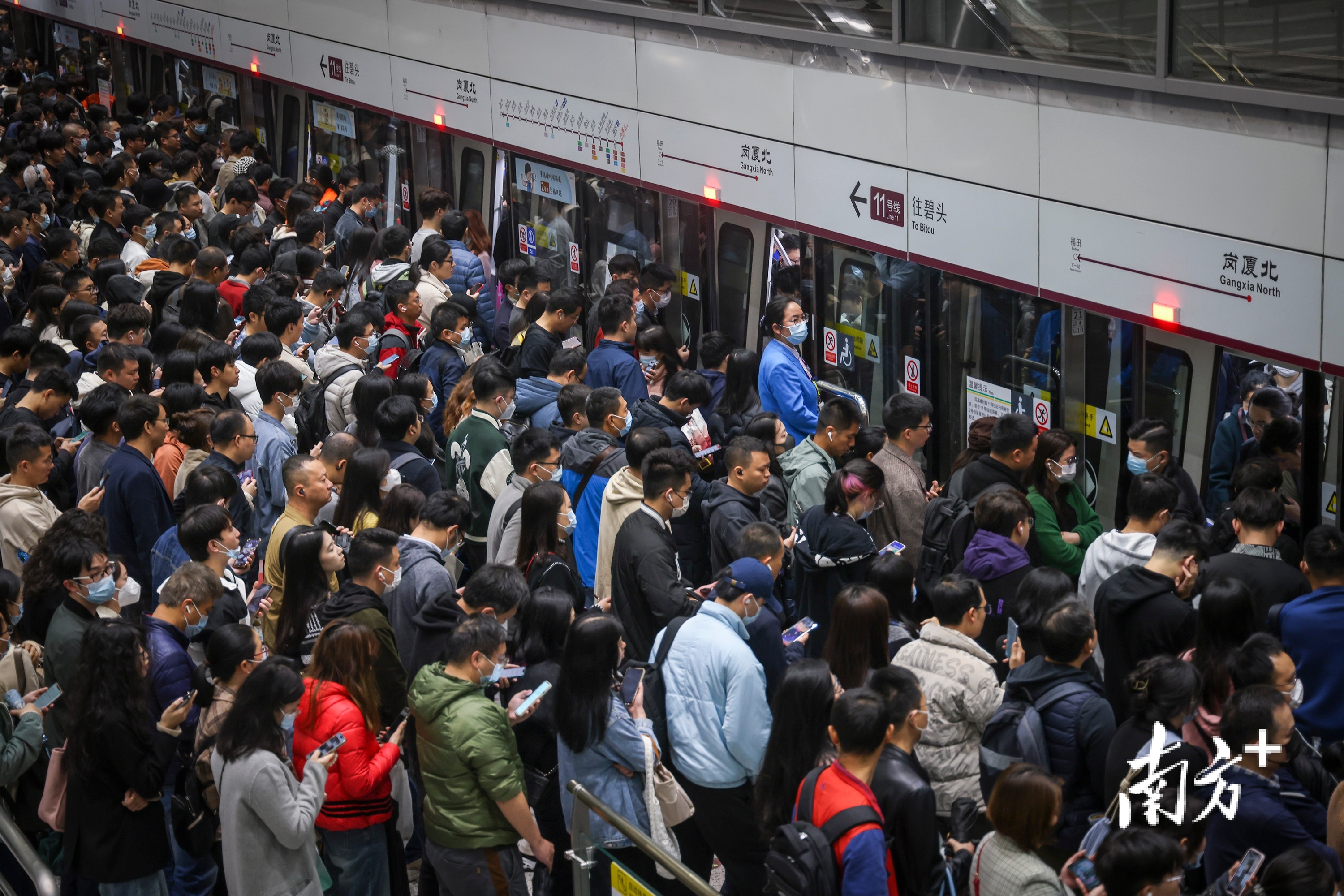 深圳岗厦北地铁站的早高峰。南方+资料图