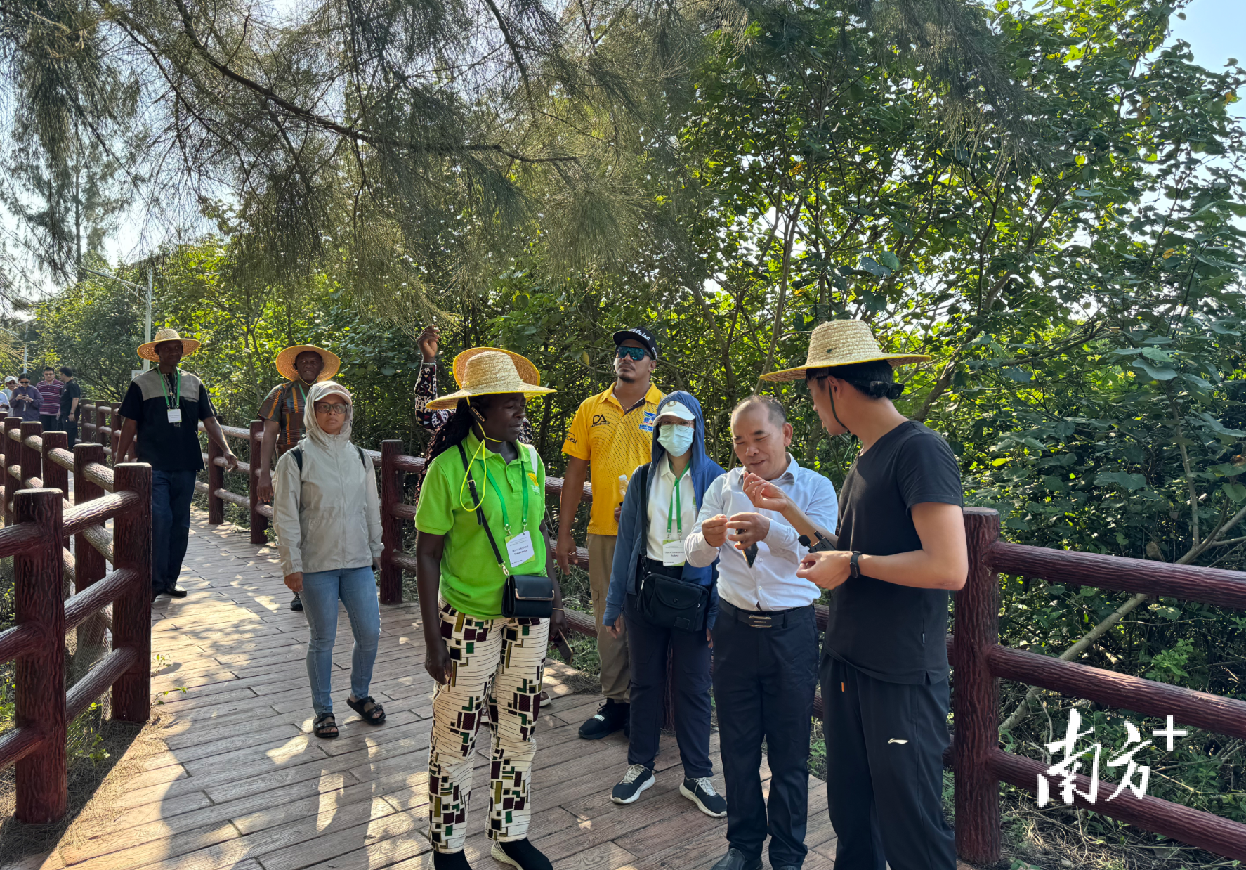 林广旋(右二)为游客讲解红树林知识。受访者供图