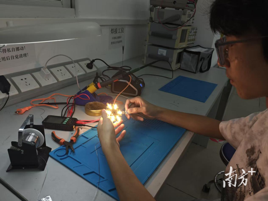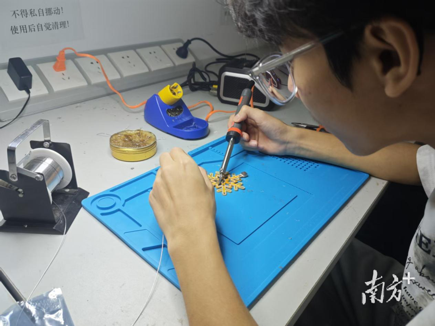学生参加雪花灯焊接培训。