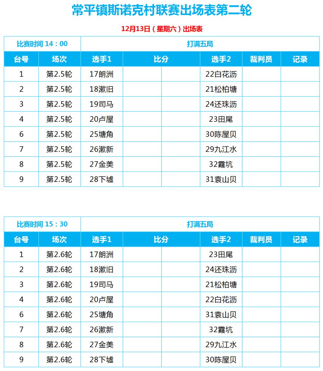 12月13日至14日,CPST“和富杯”2025-2026常平斯诺克村联赛第二轮循环赛将在中国台球协会广东省综合培训基地继续上演,各支代表队将为观众带来更为激烈的较量与更具观赏性的比赛。感兴趣的球迷可免费入场观看,为各支队伍的全力拼搏呐喊助威,一同见证积分榜单的变化。