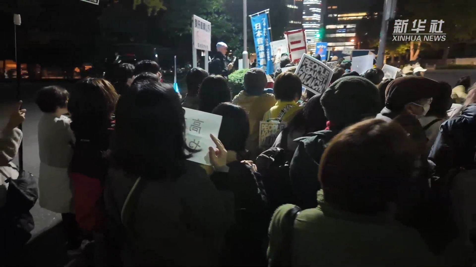 新华社东京11月21日电(记者李子越 杨智翔)数百名日本民众21日晚在位于东京的首相官邸前举行集会,抗议日本首相高市早苗近日在国会发表的涉台错误言论,要求其撤回相关表态并作出解释和道歉。