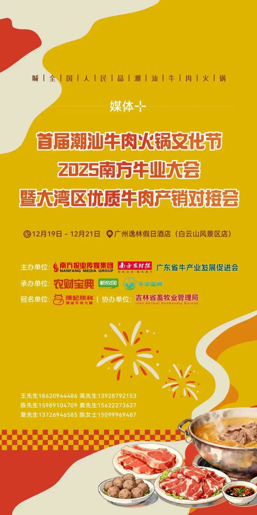 2025年末,一场深度契合全省“粤享广东、乐游广东”消费季部署,承载“粤享潮汕鲜”价值内涵的美食文化盛会,“媒体+”首届潮汕牛肉火锅文化节·2025南方牛业大会暨大湾区优质牛肉产销对接会将于12月20日在广州启幕。