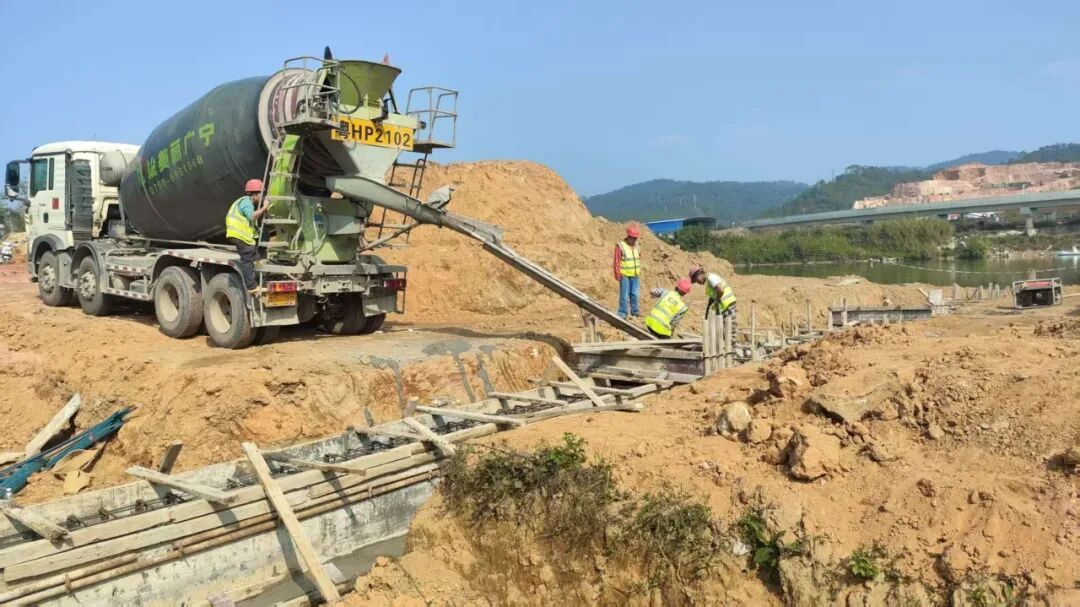 在横山镇罗帷围,1.4公里长的防洪堤坝正向着完工目标全力冲刺。挖掘机挥舞铁臂,有条不紊地为堤身填土碾压,每一次作业都力求稳固;排洪箱涵建设进入最后阶段,正进行混凝土浇筑这一关键工序。