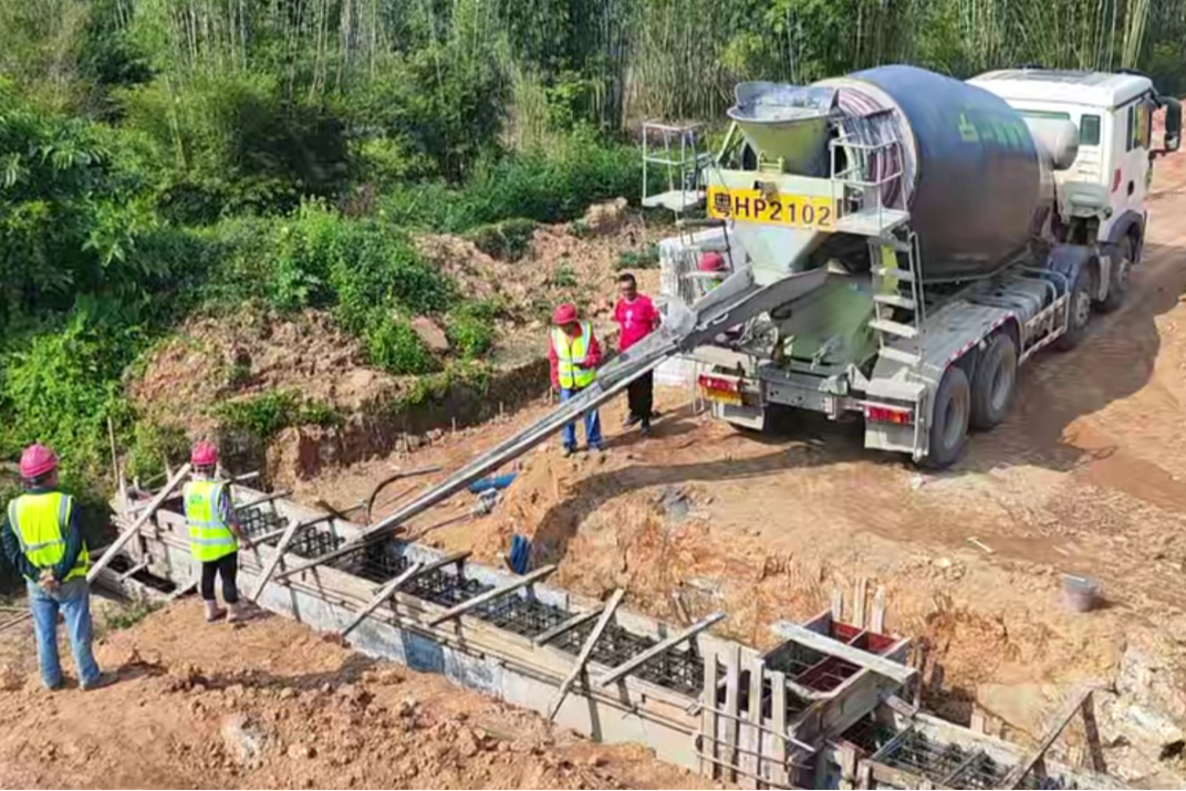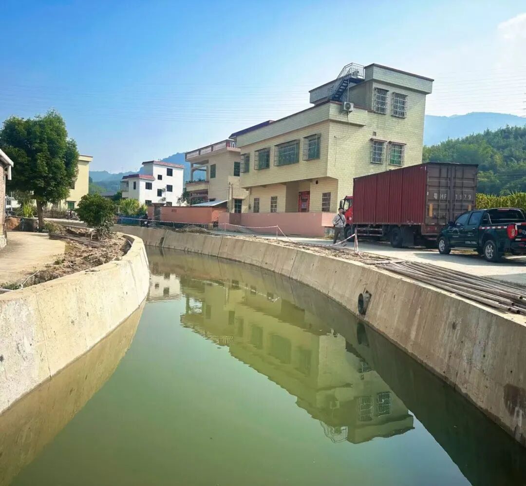 该山洪沟工程总长5.79公里,投资1472.1万元,通过河道疏浚、护岸建设、水陂改建等措施,守护横迳社区等3个村3571人的安全与375亩耕地,目前进度已达95%,防洪能力显著提升。剩余百余米主体工程正加紧推进,施工人员全力固定模板、浇筑墙体,确保按时完工。