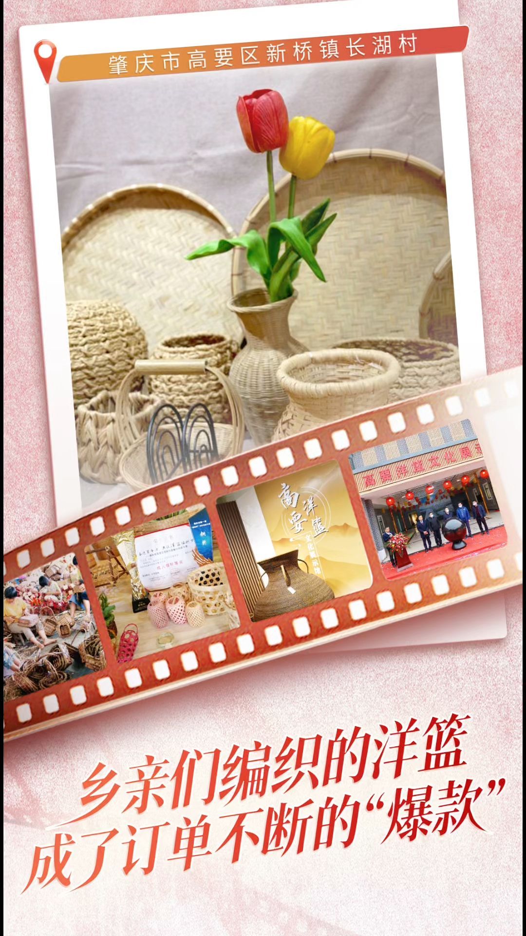 在肇庆市高要区新桥镇长湖村,村民们将一根根竹篾在手中翻折、穿插,编织成承载百年非遗的洋篮,这也是带动村民增收致富的“金篮”。