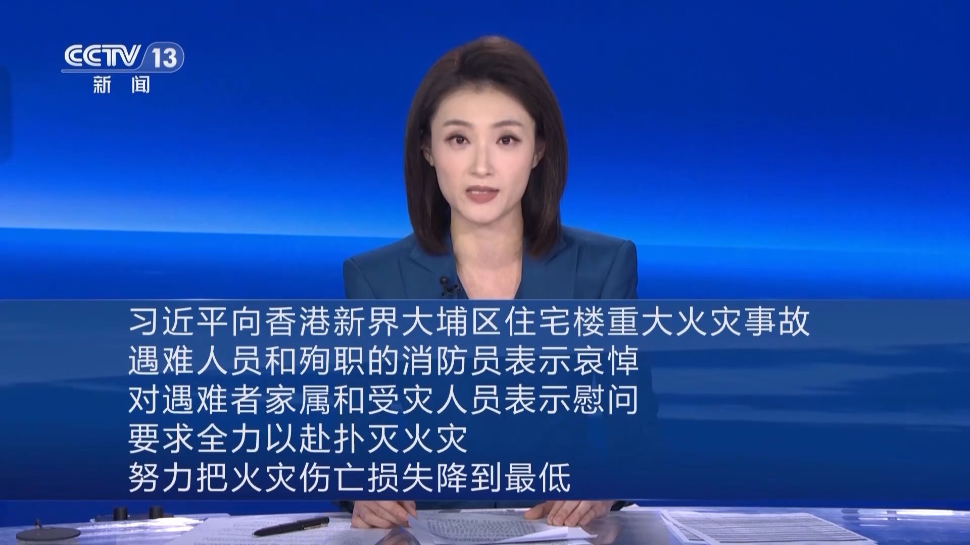 习近平向香港新界大埔区住宅楼重大火灾事故遇难人员和殉职的消防员表示哀悼