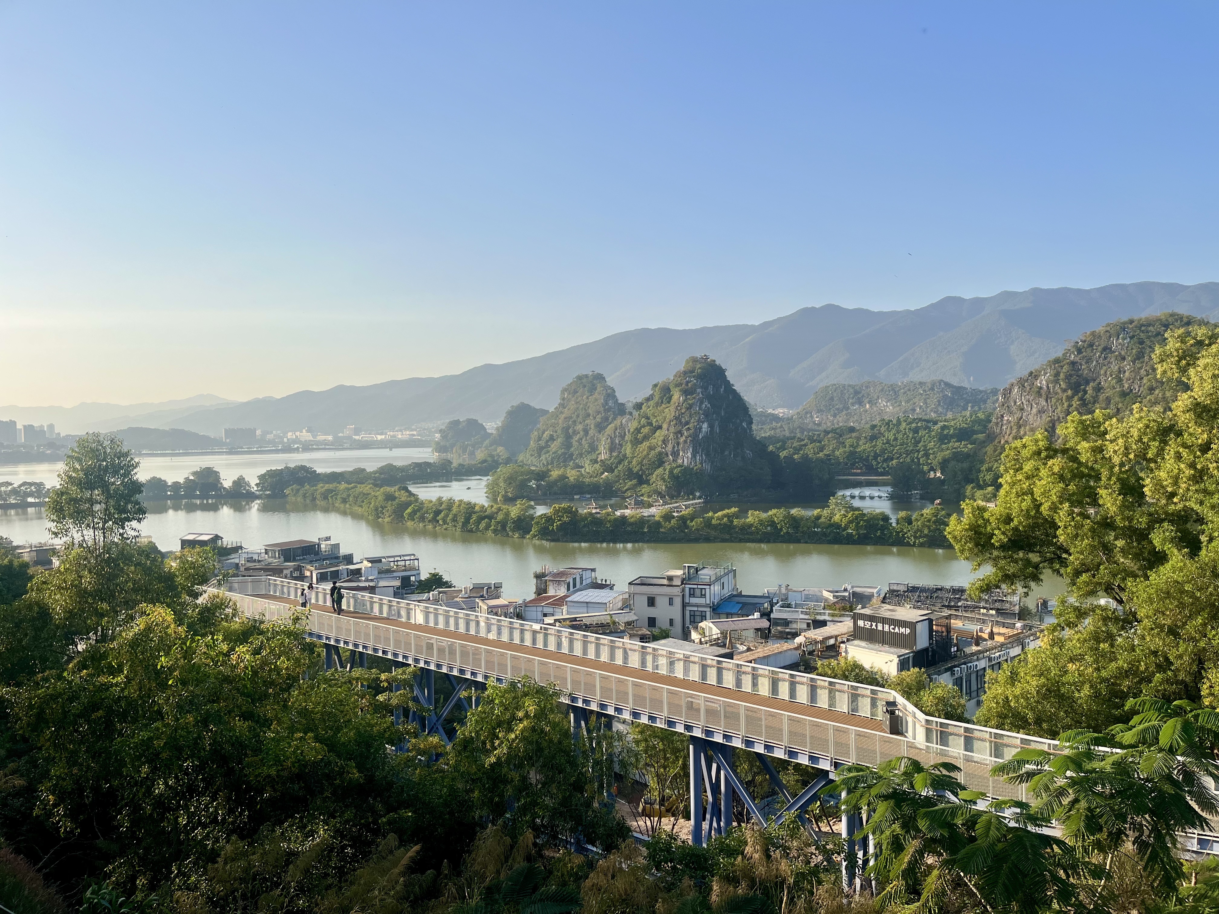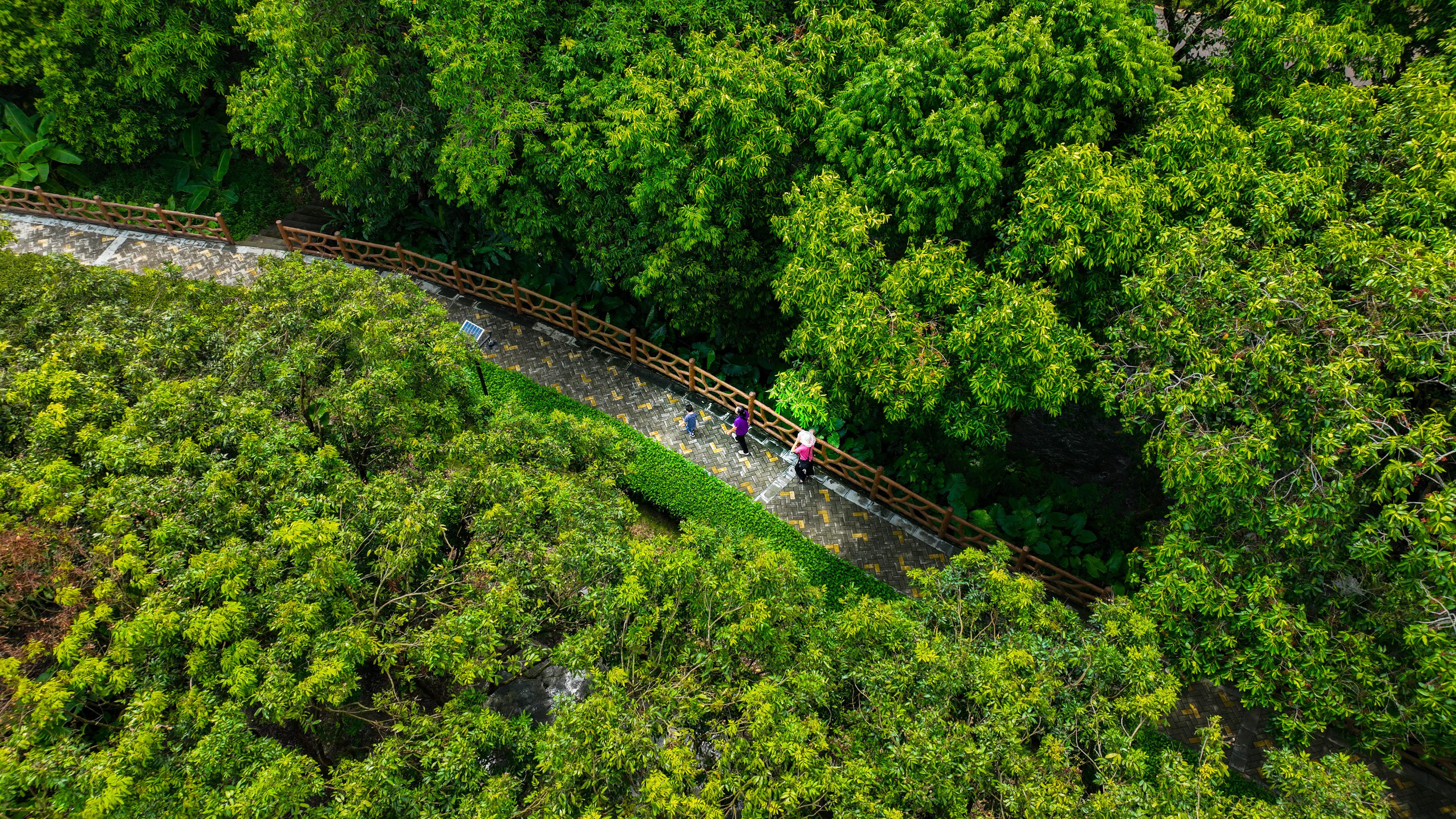 “推开民宿窗户,山光湖色就涌了进来。”一位刚入住岩前社区的游客告诉记者。他身后,八十多家民宿错落隐于林间,原木色招牌与翠绿相思树相映成趣。谁能想到,这片如今粤港澳大湾区的“网红打卡地”,曾是被遗忘的城中村。蝶变的密码,藏在正在建设的岩前象岗绿美点中。一条云道如丝带般飘逸过山脊,将星湖的浩渺、街巷的烟火、古树的苍劲串联成有机整体,让“抬头见绿、出门即景”从愿景变为居民触手可及的日常。
