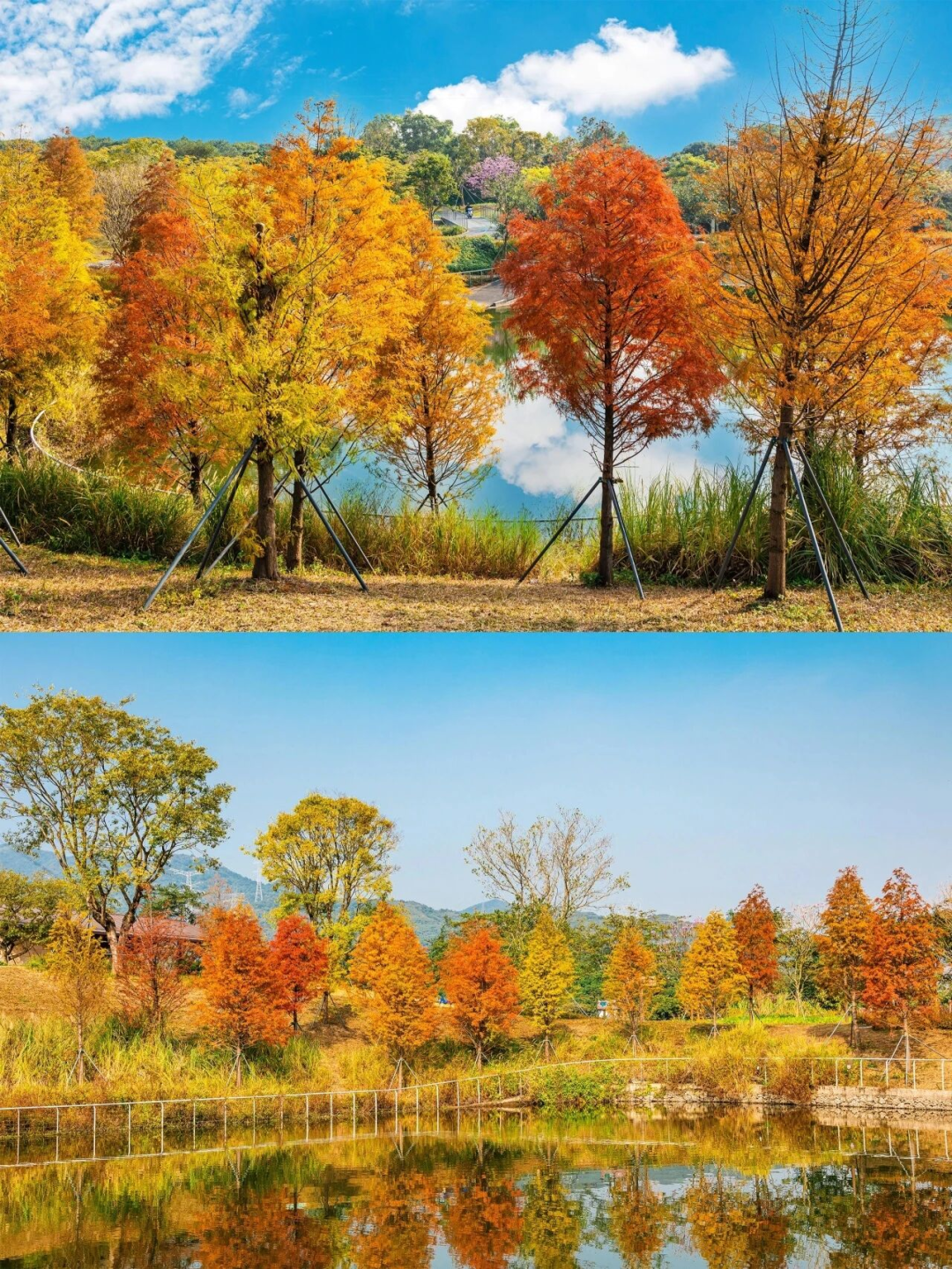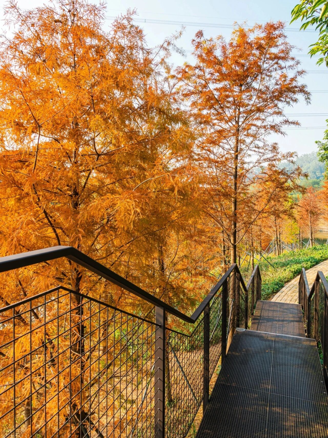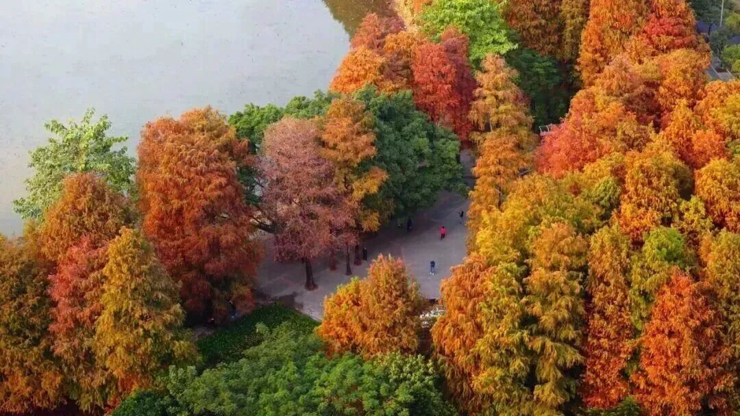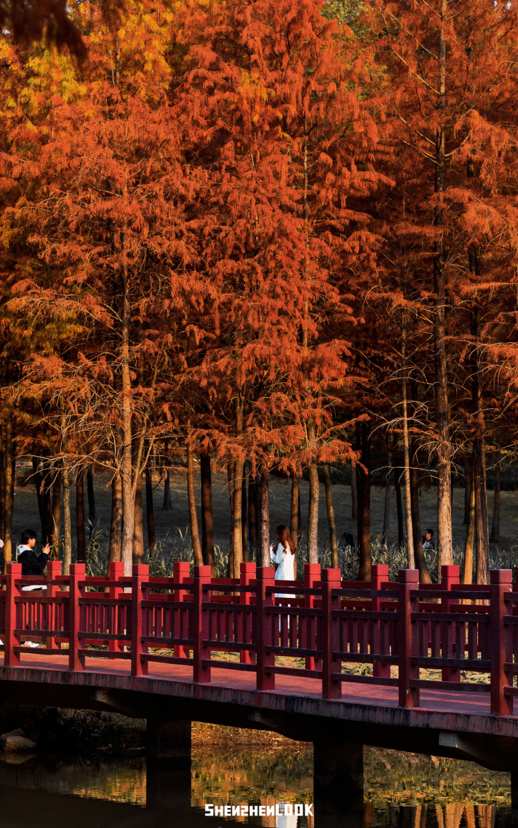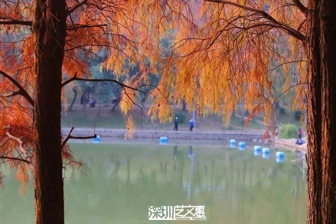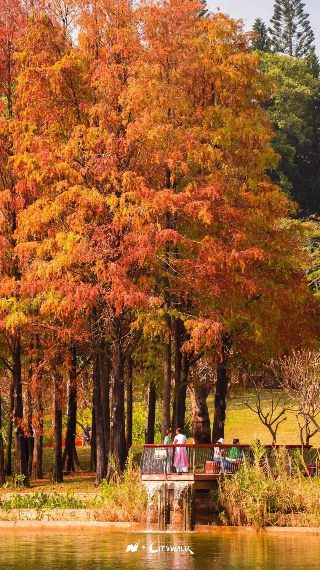 注:四海公园的落羽杉还未红透,可以在12月下旬至1月前往观赏。