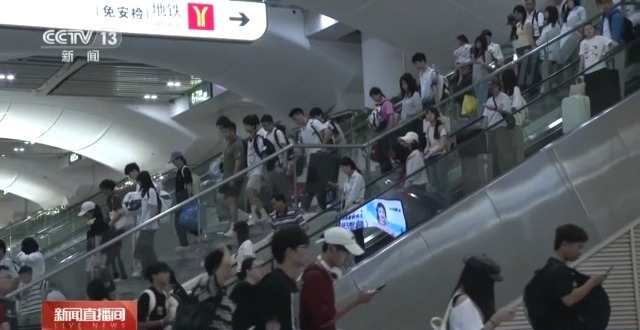 总台记者 秦芊茗:从10月6日开始,广州南站就进入了假期返程的客流高峰,今天许多旅客带着大包小包的行李来到候车大厅。为了让旅客安检更加通畅,在客流高峰期间,广州南站全面启用76条实名制验证通道与48条安检通道。虽然安检口的客流不少,但整体通行还是较为顺畅的,平均等候10分钟左右就能进入候车大厅。
