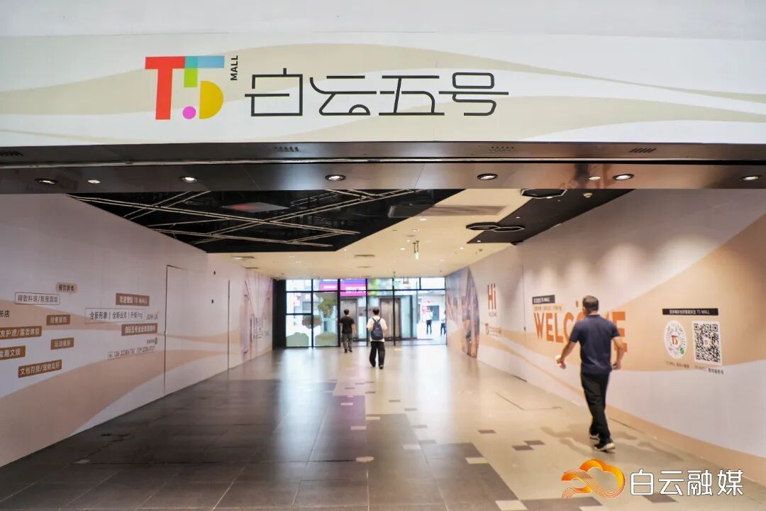 目前,T5 MALL外立面已更新,换上了“白云五号”的大招牌,大部分区域保持正常运营,部分店面正在进行装修。