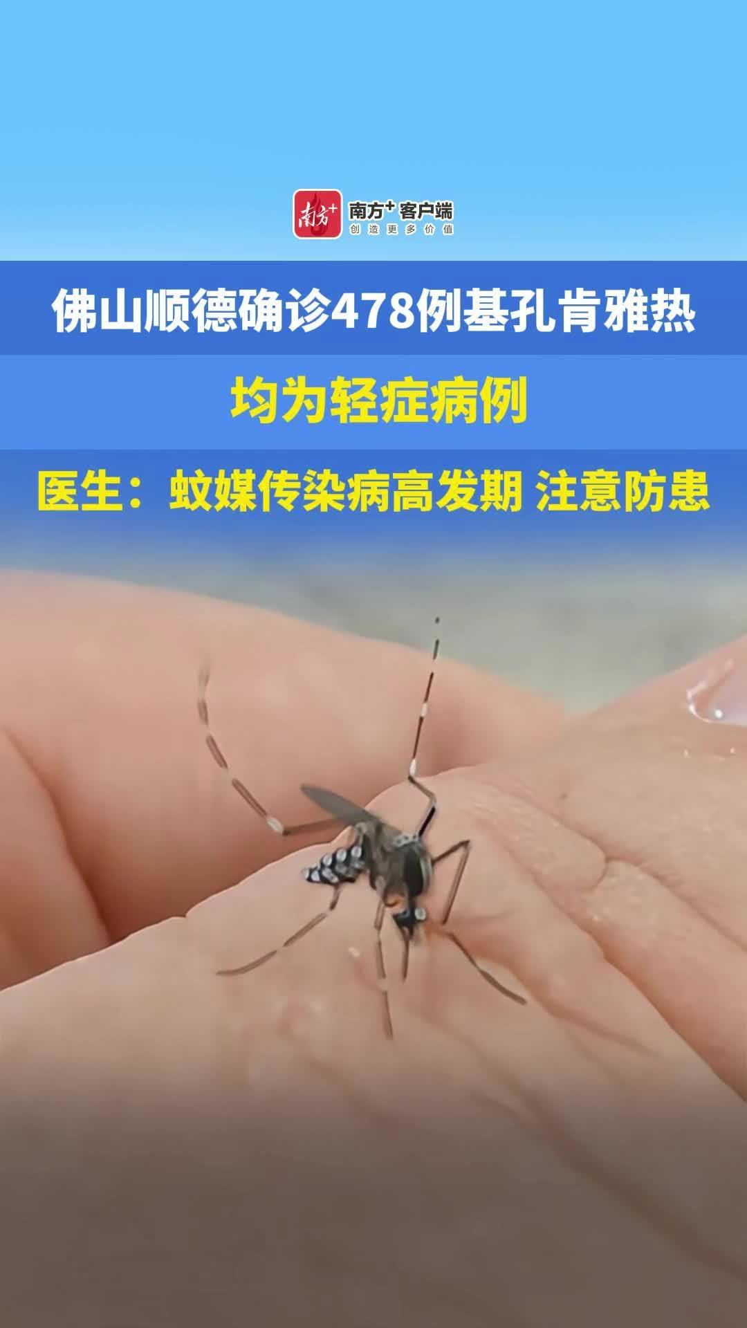 佛山顺德确诊478例基孔肯雅热,均为轻症病例