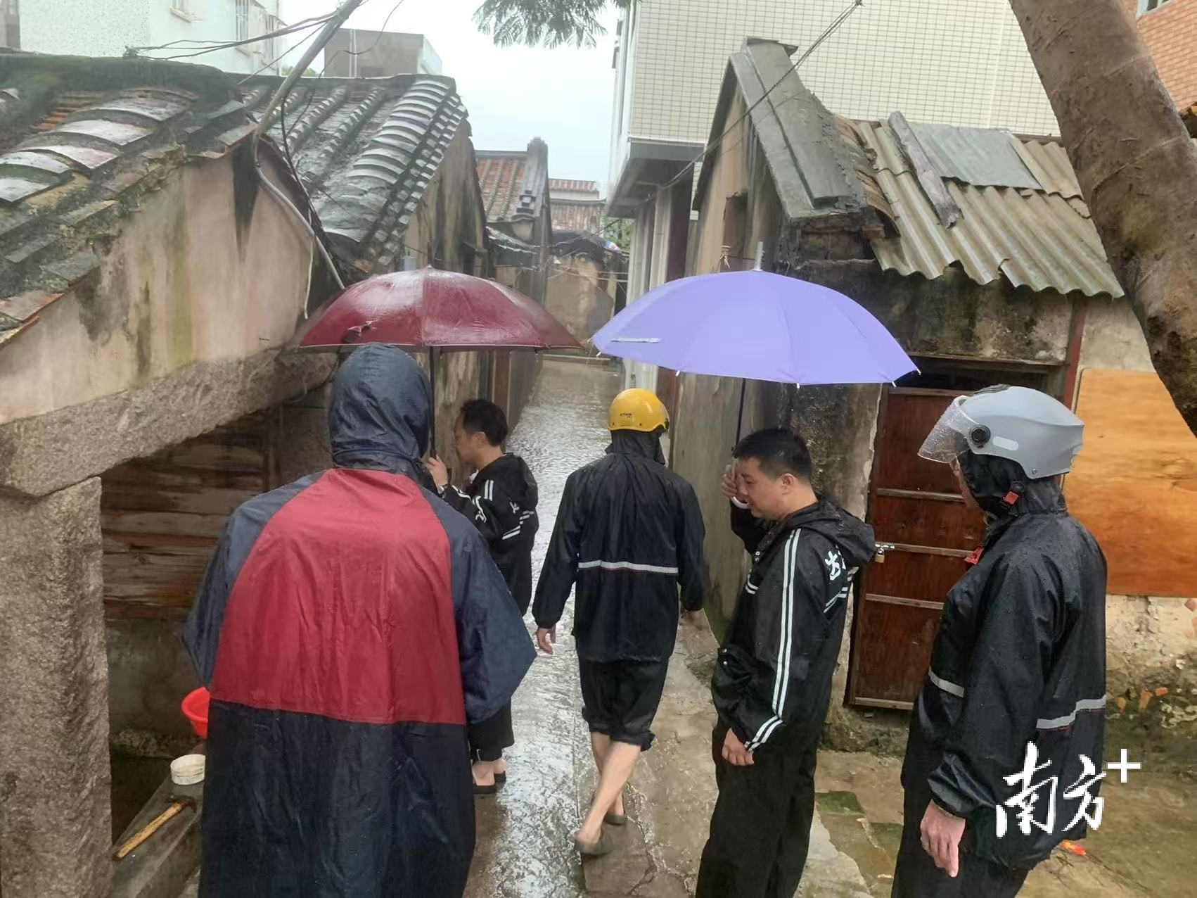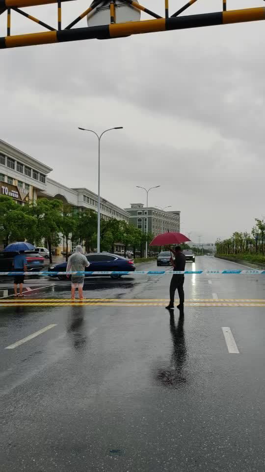 11时,濠江区玉新街道灯塔社区出现最大雨量为72.4毫米。为防止行经车辆进入积水路段,玉石社区工作人员在社区外部路拉起警戒线,引导车辆通行。