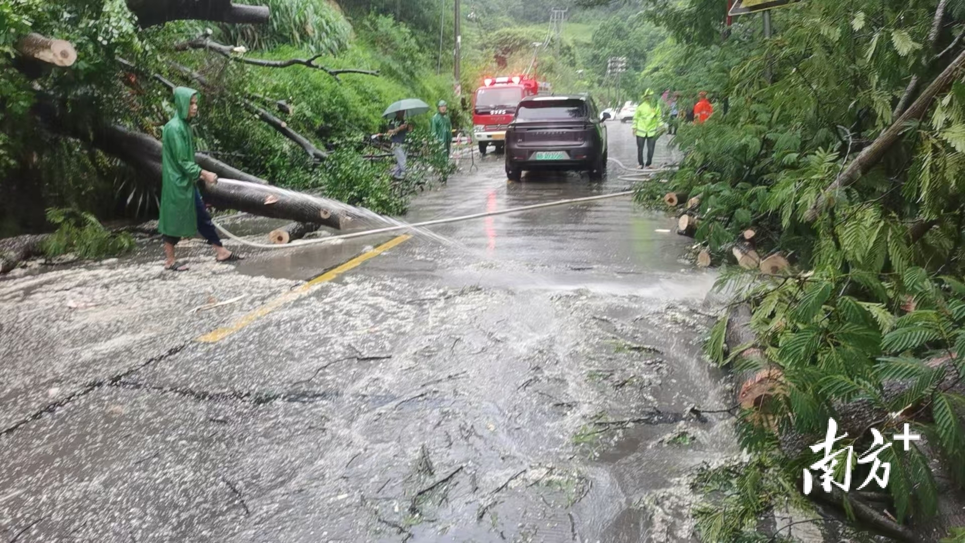 3日11:30 潮南红场镇一路段树木倾倒,当地已组织清理、恢复交通