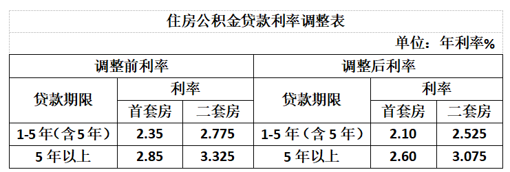 一、自2025年5月8日起,下调个人住房公积金贷款利率0.25个百分点,5年以下(含5年)和5年以上首套个人住房公积金贷款利率分别调整为2.1%和2.6%,5年以下(含5年)和5年以上第二套个人住房公积金贷款利率分别调整为不低于2.525%和3.075%。