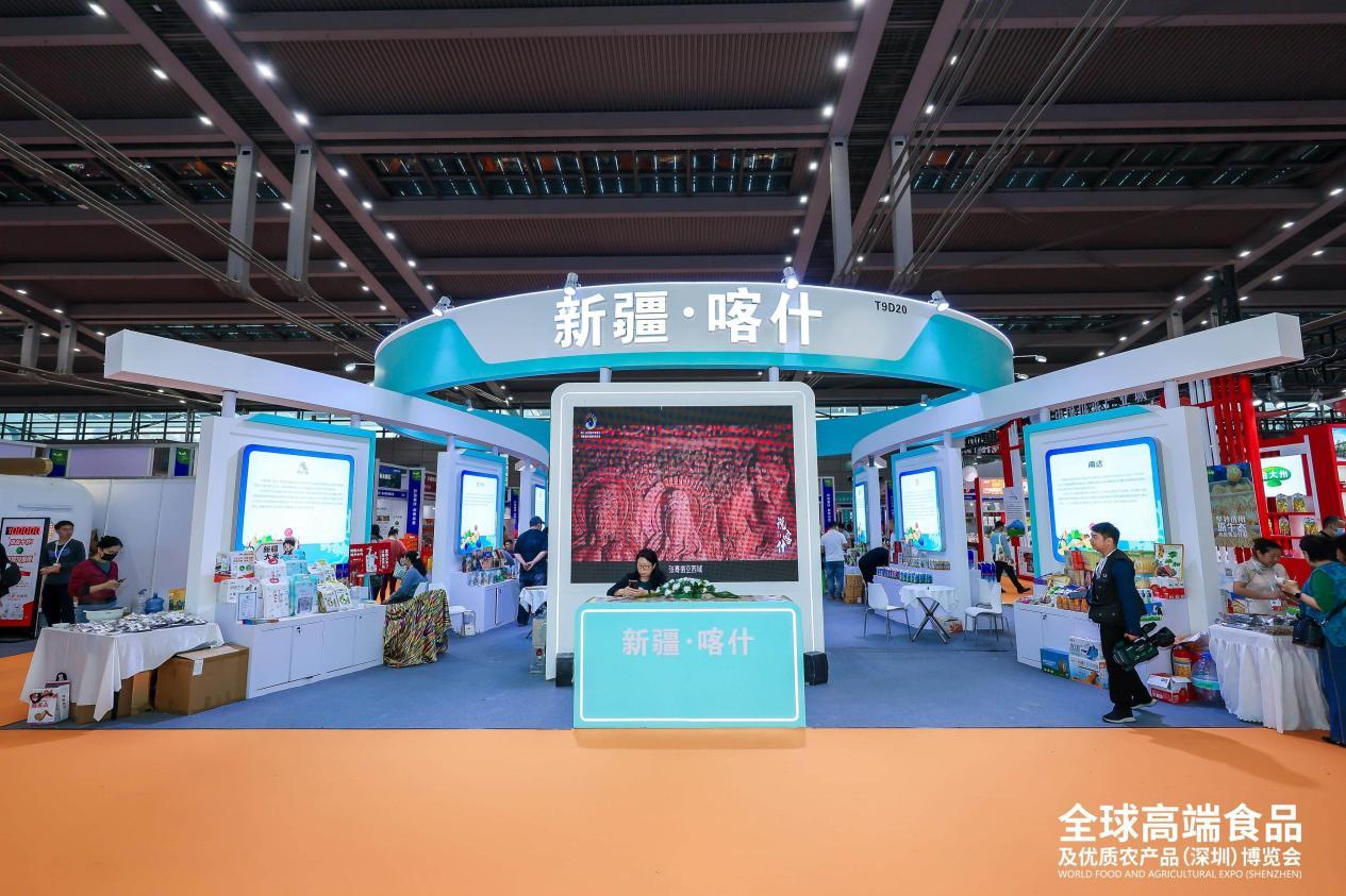为持续提升喀什农产品市场化竞争力,促进喀什现代农业高质量发展,深圳市对口支援新疆工作前方指挥部(以下简称:深圳援疆)牵头组织喀什卓越愿臻生态农业科技有限责任公司、新疆千万里农业科技有限公司、新疆南达新农业股份有限公司、塔什库尔干县威泰生物科技有限责任公司等20家优质南疆涉农食品企业赴深参展。为喀什农业产业注入“深圳力量”的同时,展示“来自喀什的天生好物”区域品牌与南疆农业现代化成果,让国内外参展商、观众体验到喀什农文旅产的独有特色。