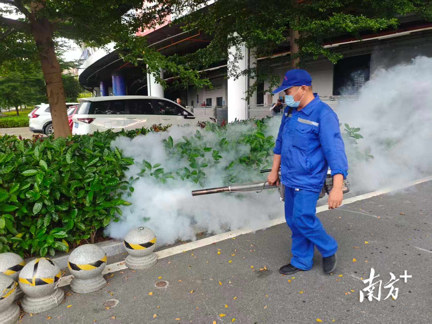 专业消杀团队在南海体育中心进行灭蚊消杀。