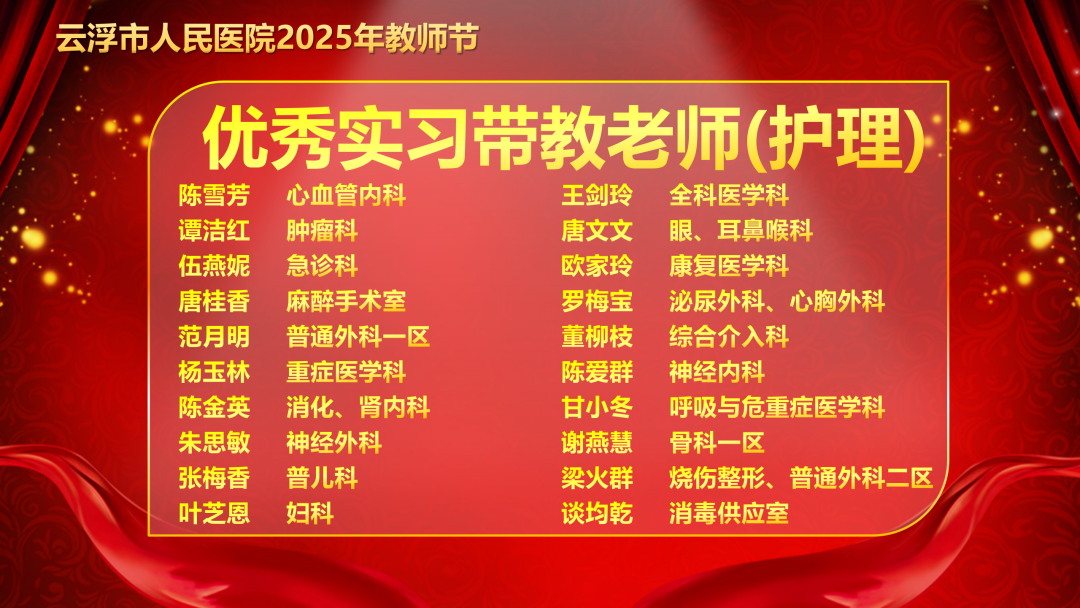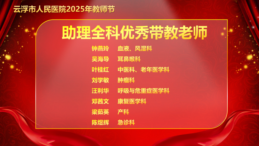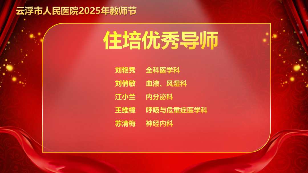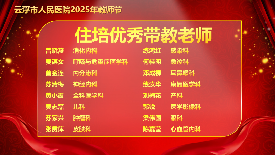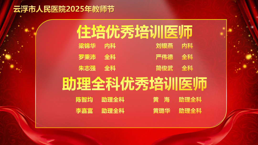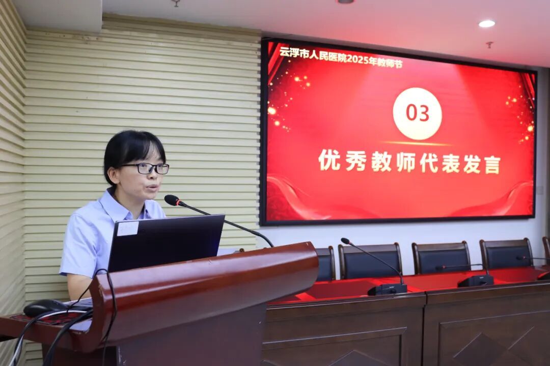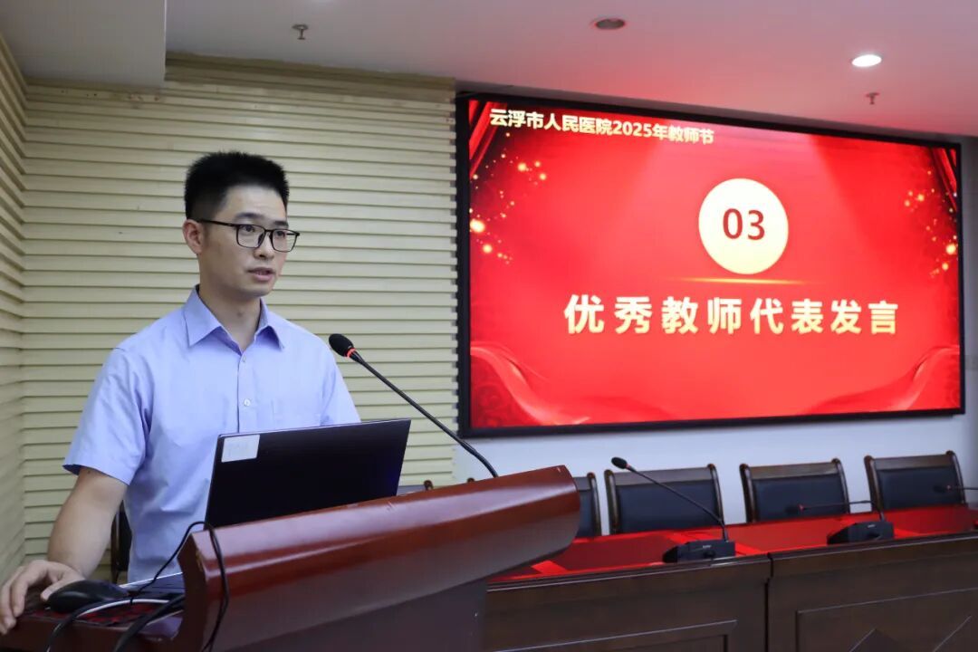 秋韵荡漾,师恩难忘。在这金秋送爽、丹桂飘香的季节里,我们迎来了第41个教师节。9月10日上午,云浮市人民医院在会议室举行2025年教师节表彰会,表彰先进教学团队和个人。医院党委书记金峰、院长吴志华、副院长莫必华、总会计师黎晖,以及医务科、护理部等职能科室代表,优秀教研室、优秀教师和优秀培训医师等出席会议。