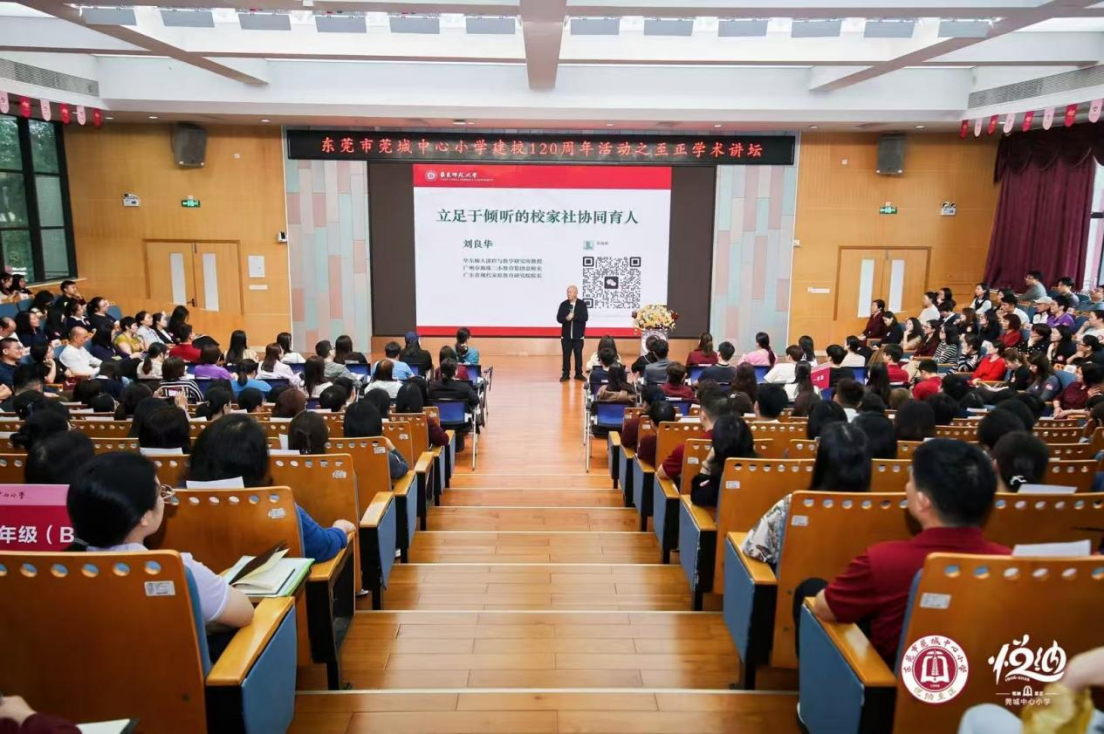 作为3月2日当天重磅活动之一,“立足于‘倾听’的校家社协同育人”至正论坛于当天下午开讲。华东师范大学教科院博士、教授,广州市海珠区第二实验小学教育集团总校长,广东省现代家庭教育研究院院长刘良华受邀,与莞城中心小学教师、家长分享如何在家庭、在校园“倾听”学生。