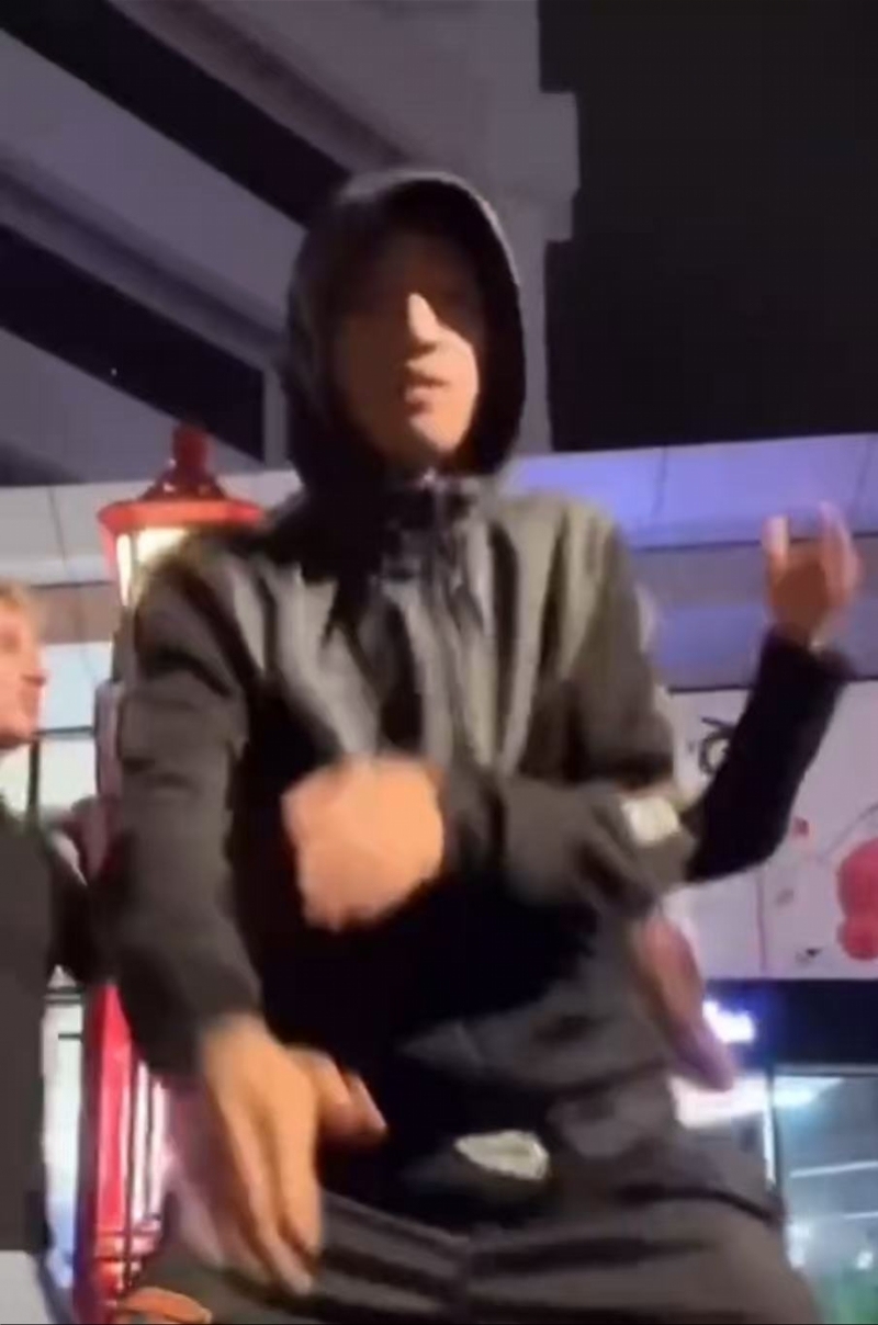 事发时的直播录屏截图。谈及事发经过,郑先生向南都记者回忆道,当时,他在奥克兰市中心进行直播并跳舞。一群年轻人(人数超过10个)向他走来,佯装要与他互动跳舞。随后,他们抢走了郑先生的两部手机和背包。郑先生称,他试图追赶对方,但却被对方逼入死角,并遭到了殴打,“现在还没抓到人”。