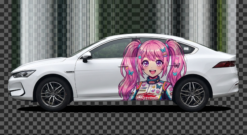 痛车的订单,则是来自一位淘宝店主,“一位淘宝店主找到我,他想要将AI跟他手头上的‘痛车’场景结合起来。老实说,我也不知道什么是痛车,经过多次的搜索和学习,终于知道他要实现什么,不就是想用二次元图片给车贴膜嘛。这个场景跟AI试衣非常像,都是可定制化程度比较高的,在经过简单的商榷后,他问我价格,我开了8000的价格。但你们知道我花了多少时间做demo给他?25分钟!从0到给他demo,我只花了25分钟,改了3个版本,8000块稳稳到手。”