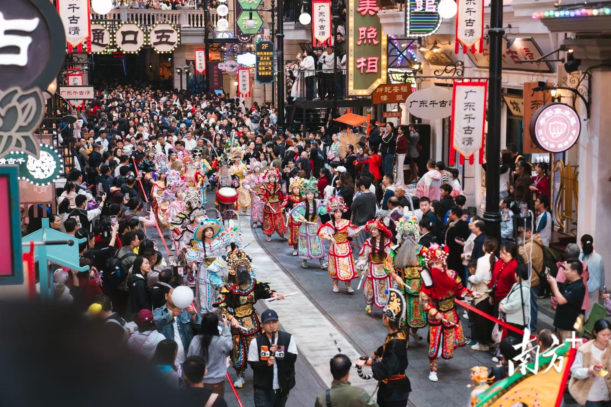非遗“活”起来,天天有惊喜。在西樵,春节期间,非遗从静态展示走向沸腾现场。重头戏当属松塘村“出色”巡游,古朴盛大的仪式吸引超5万人次游客,同比增长66.7%。广东千古情景区则让非遗“天天见”,醒狮、英歌舞与鱼灯巡游、火舞秀轮番上演,假期累计演出57场,带动周边酒店入住率飙升至95%。