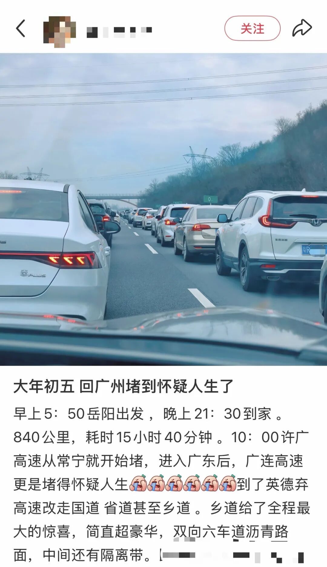 第一批返程的人已堵在路上,有人回广东开了超16小时
