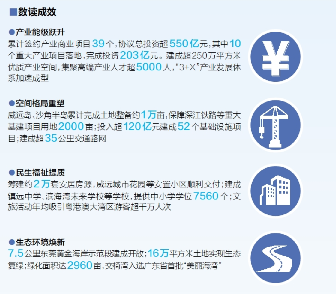 三年耕耘,起笔不凡。以“百千万工程”为引领,滨海湾加快构建现代化产业体系,助力东莞“优势塑造、动力增强”,统筹推进空间拓展、民生改善和绿美生态建设,以更加开放的姿态和更具前瞻性的布局,在竞合开放中塑造面向未来的发展新优势。