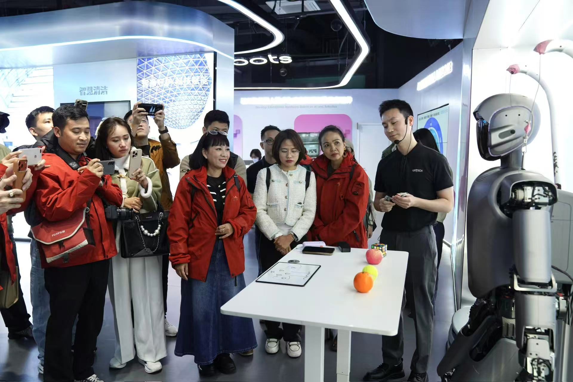 阮克海河是首次参观规模如此庞大的机器人基地,他对教育机器人印象尤为深刻:“从幼儿园到中学都能适用,既能激发学习兴趣,又能传播知识,在越南教育和医疗行业潜力巨大。”他表示,会通过家庭分享和大众媒体报道,让更多越南人了解中国机器人技术,期待越南能借鉴相关经验,推动本土产业发展。