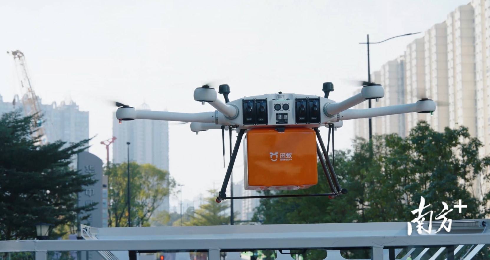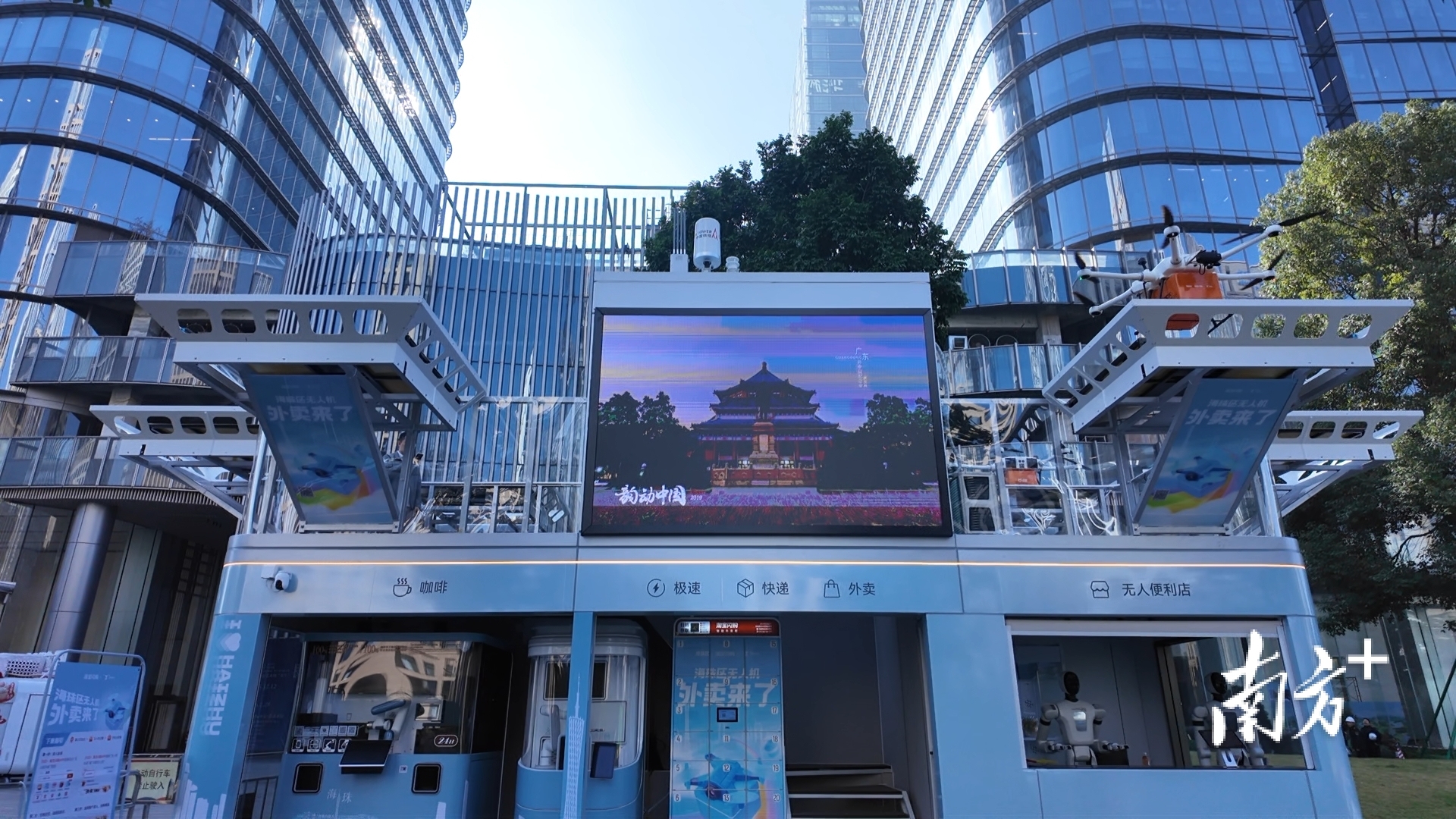 午间的琶洲写字楼群,手机点单,七八分钟后,外卖从天而降。
