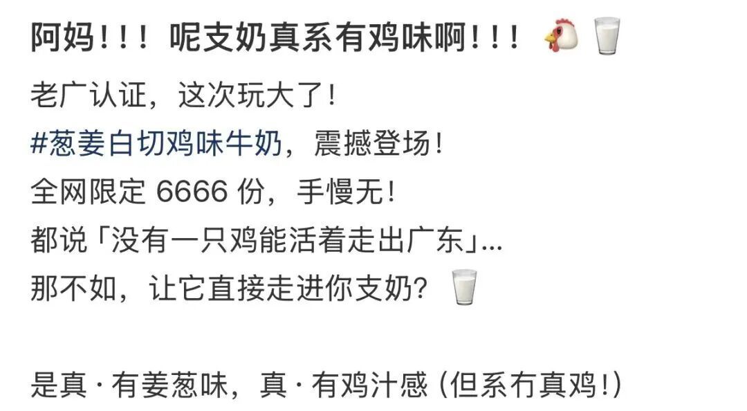 最近你有听说过一款鸡味牛奶吗?你没有看错——姜葱白切鸡味牛奶。