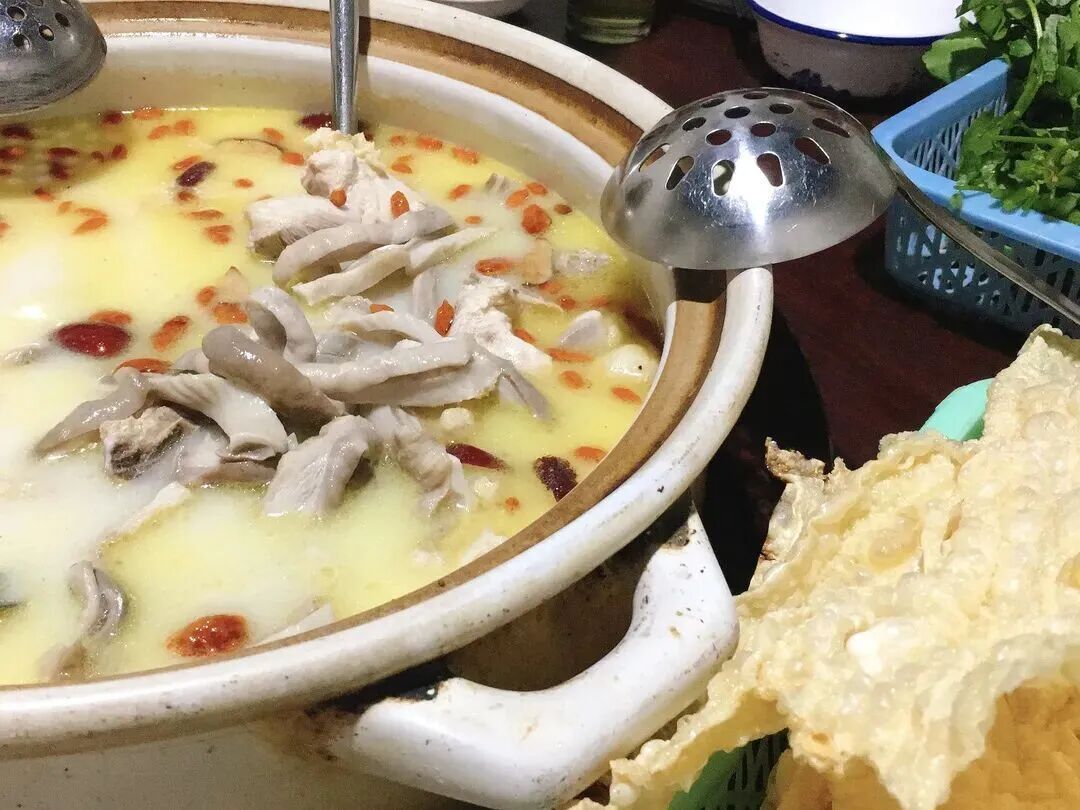 奶白色的浓汤是一口精华所在!同样是美味养生两手抓起,能喝汤能涮丸子蔬菜。