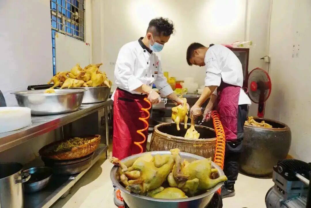 湛江白切鸡、东江盐焗鸡、客家猪肚鸡、广州清水煲鸡、顺德桑拿鸡、清远吊烧鸡、普宁豆酱鸡等十余种菜式。