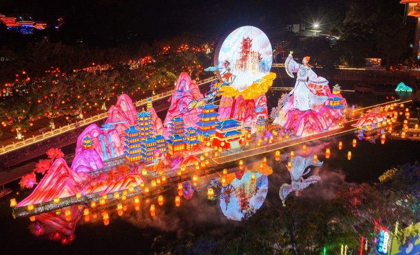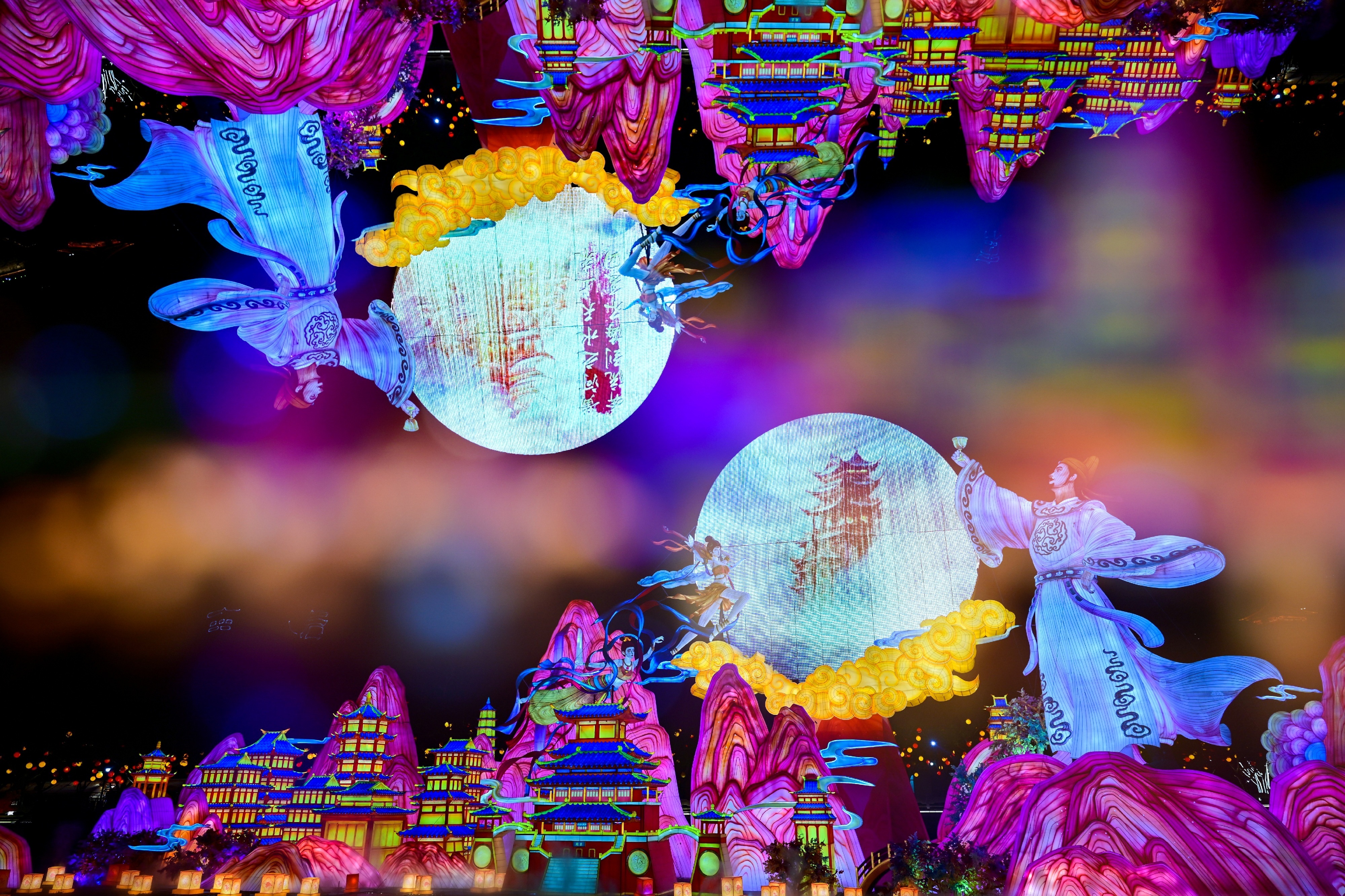 灯组坐落于天后湖畔,以诗仙李白“举杯邀明月”的千古名诗为灵感,通过专业造景、搭配和调色完美还原盛唐时期的万千气象。