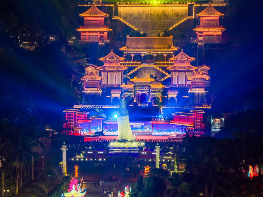 光影秀以“山海共此时·光影耀南沙”为主题,以南沙天后宫古建筑群为载体,于山海间铺展出跨越古今的光影长卷。